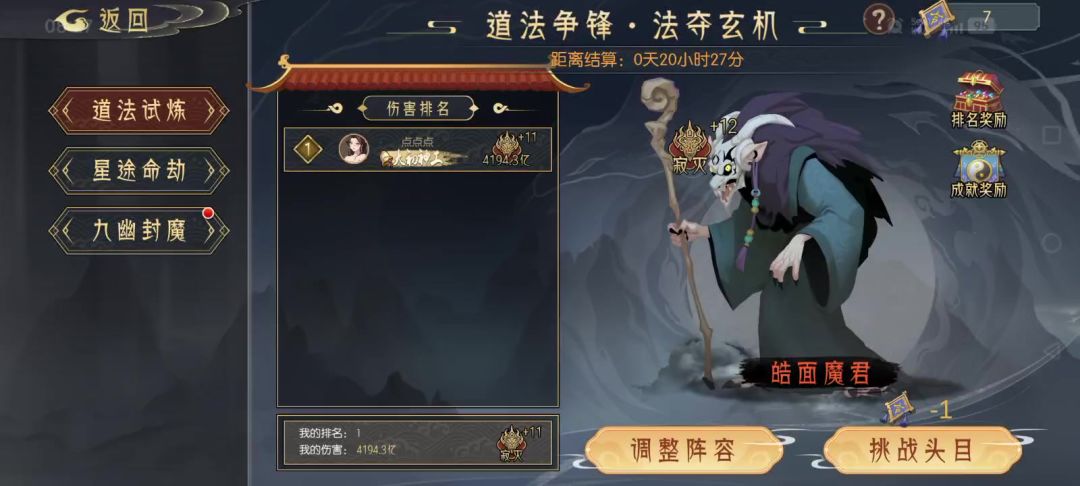 简单说下说下配置和打法,天云柳,柳15其它13,装备核心是主角和柳双图加唤冰武器,前四回合放剑海丹,第一轮怪第二回合再杀,加成核心是绿色的灵气,蓝色的波涛和3灵气,紫色的出牌加威能,潮势,这些能保证过第八组怪,第九组怪必须最后一回合出金色的消耗潮势获得叠浪和伤害