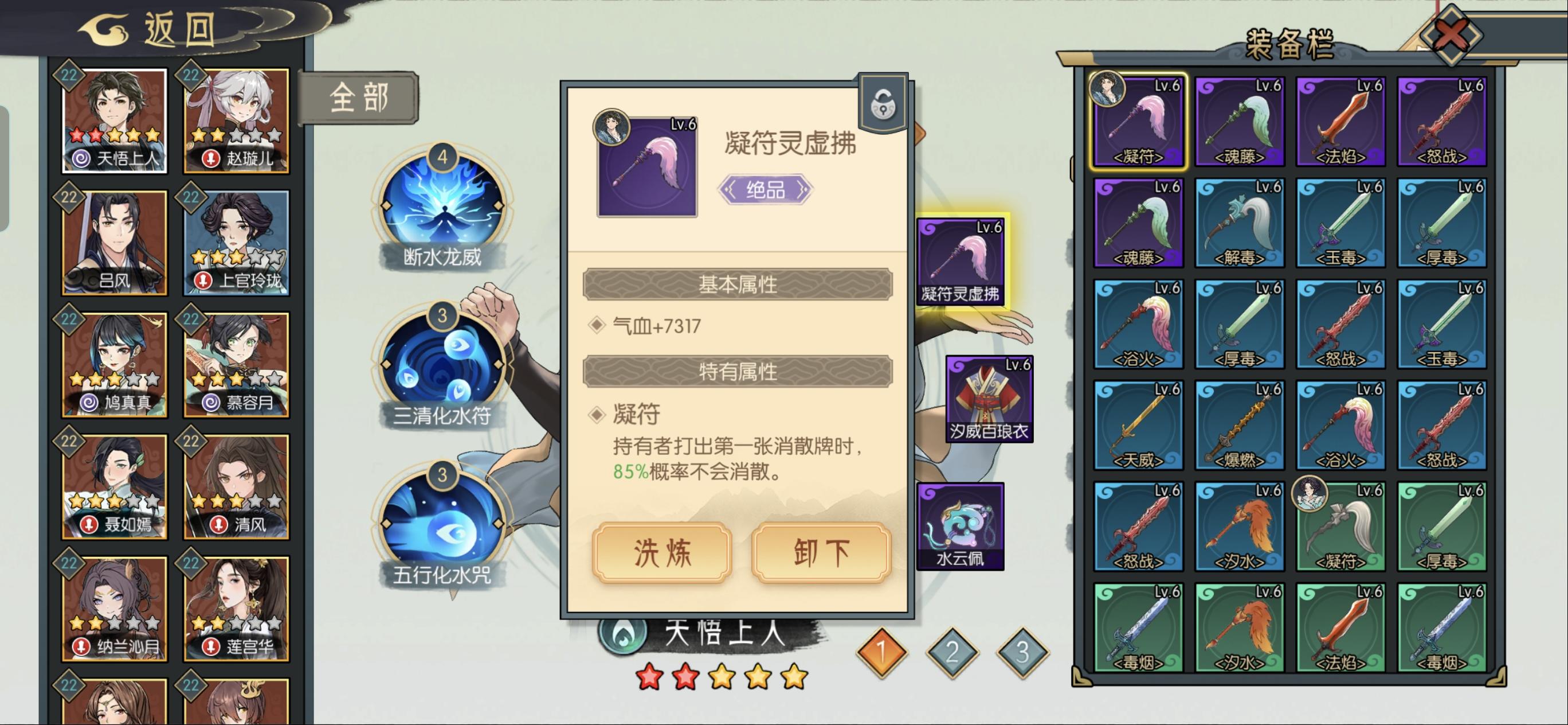 把近一个月的资源都用来抽卡了,天悟升到 7星刷到紫色凝符,洗练成85%