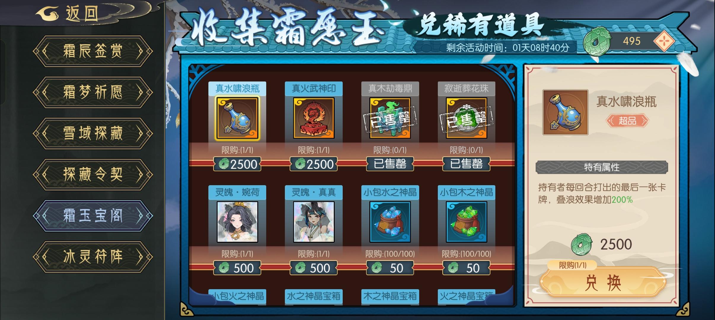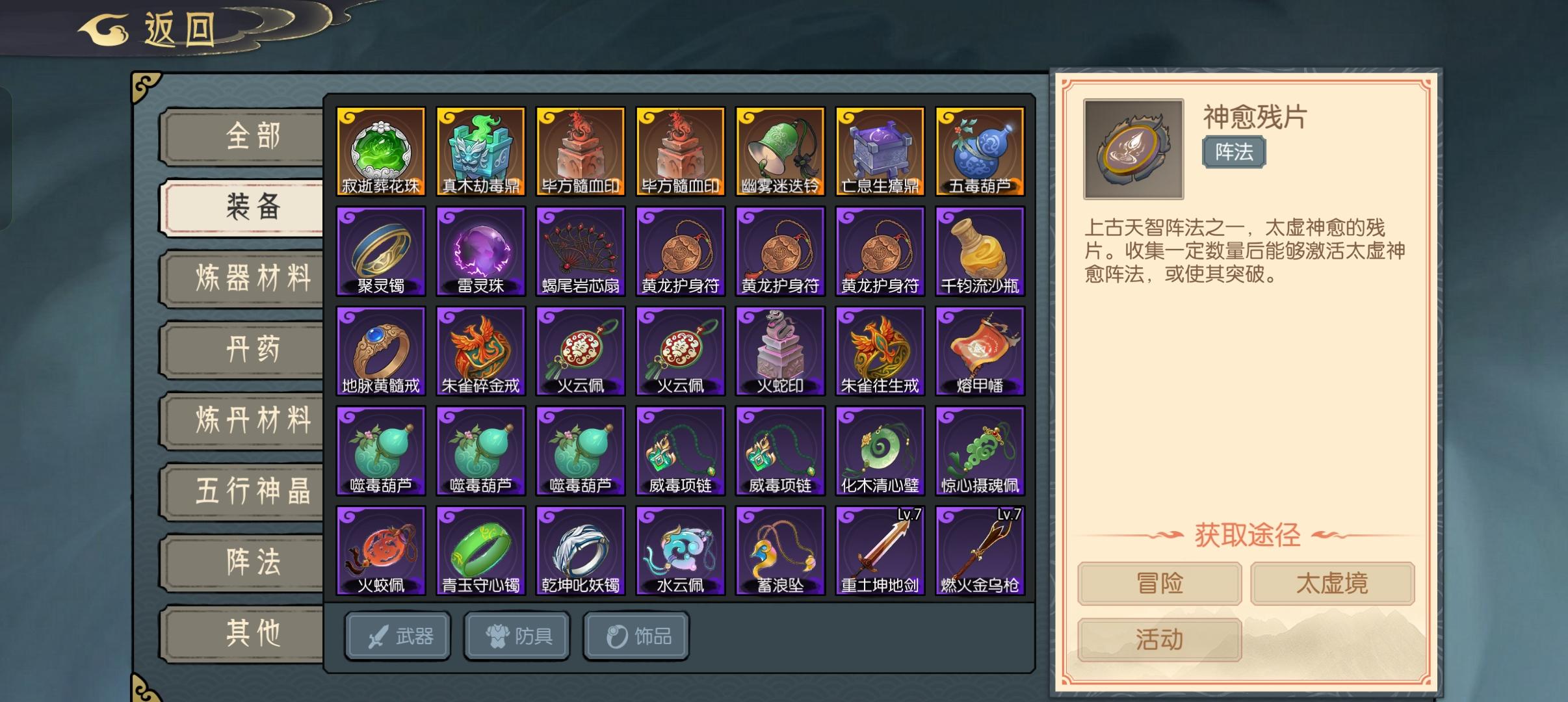 我这号有一点欧,由于我上班时间进区晚,刚进区已经有人9级了。5天半大漠通关,完成逆袭。靠的就是冬季活动的毕方。第一期的饰品没有换。换了第二期2个。最开始的玉要拿来换鼎,猫佬说要先换珠子,看自己情况吧,我只能说首轮有鼎上毒和没鼎上毒差2-3倍。1毕方,2葫芦(都说换鼎,那要是1只怪还不如木息项链)3鼎(实在没得换,想以后越塔就和我一样换幽雾)玉兑换就兑换毒鼎。(平民要很久才能筹齐整套,等到明年这