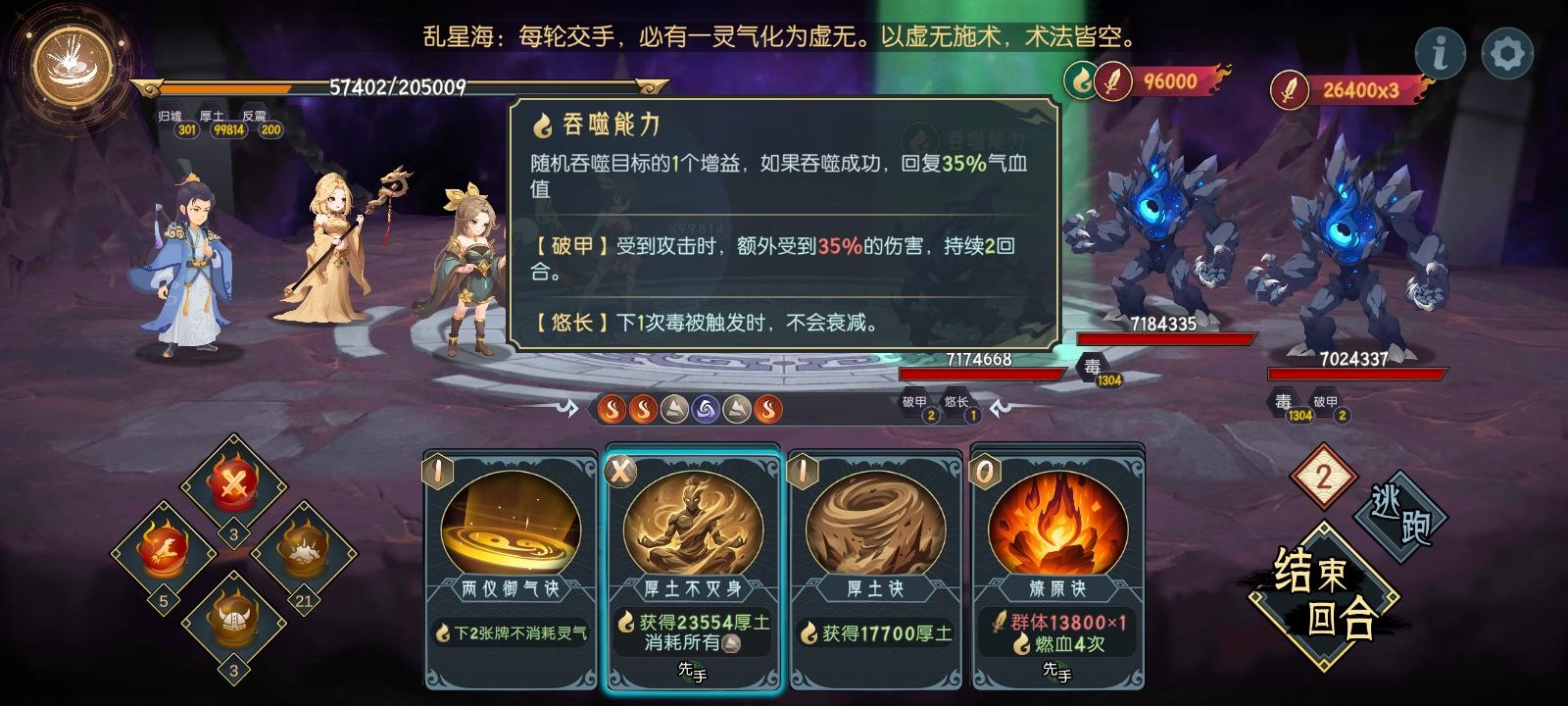 本来想拖时间,吃厚土丹反震丹反死小怪的,结果看到这个“吞噬”