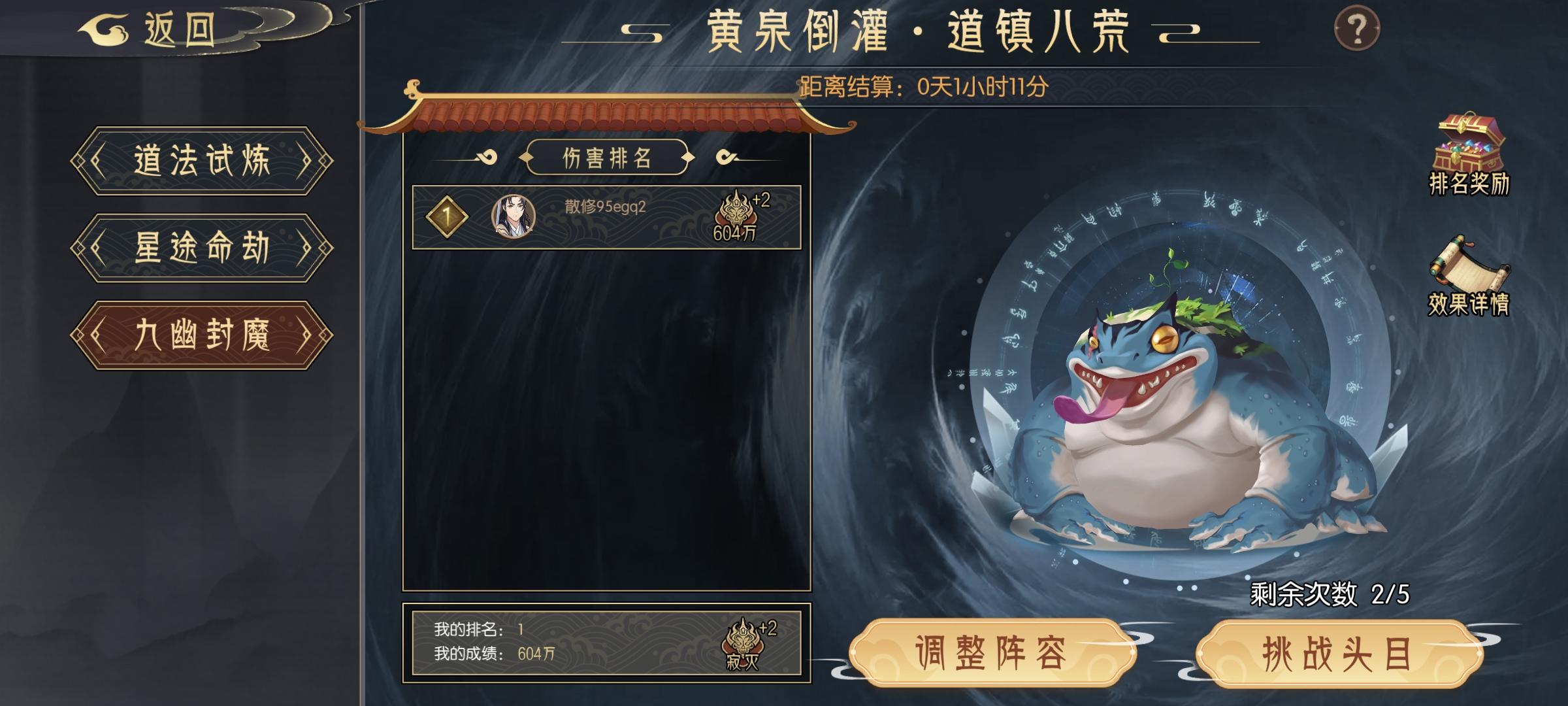 区里就剩俩人了,榜一打不过,我只要打九幽道法就能拿第2(第2张装备是我的,可见我这号没咋花钱也打不了多高伤害),打成什么样都是第2…感觉没什么动力卷了,也没有充钱的必要了