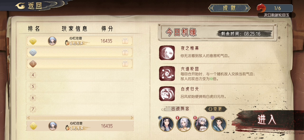 大家好,我是沉梦,继上天的轮回境帖子之后,今天终于碰到了六道轮回这个交换血量的机缘。那么,沉梦就给大家展示一下六道机缘2分钟的满分打法吧,希望能对各位小伙伴有所帮助哦[表情_开心][表情_开心][表情_开心]