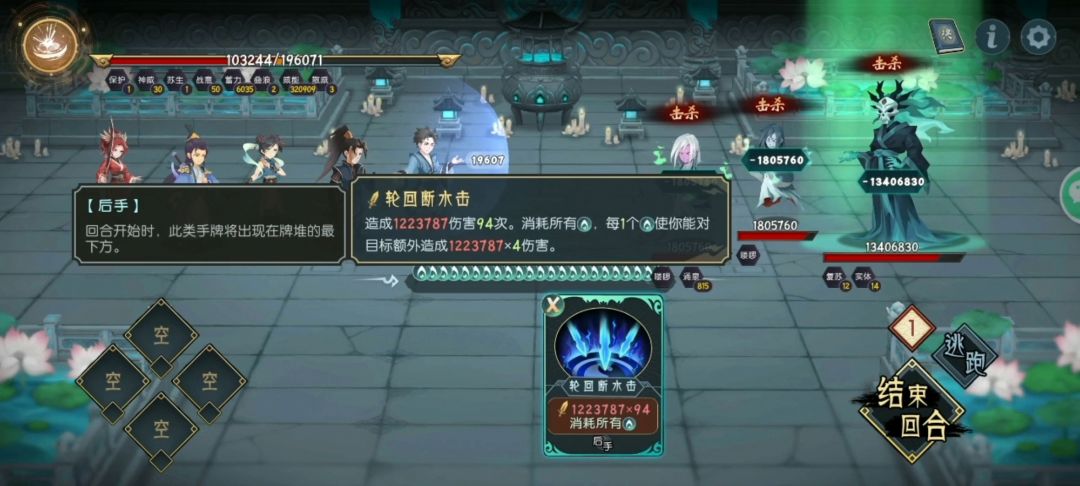 骨妖常用打法就是这套,有些人说伤害不够,用这套复制神威无量才能打,那你可能缺个绝杀,有了绝杀你就算复制三清化水都能过,这最难的boss将是最简单的。如果有个金绝杀建议选这个boss做最终boss,随便乱杀