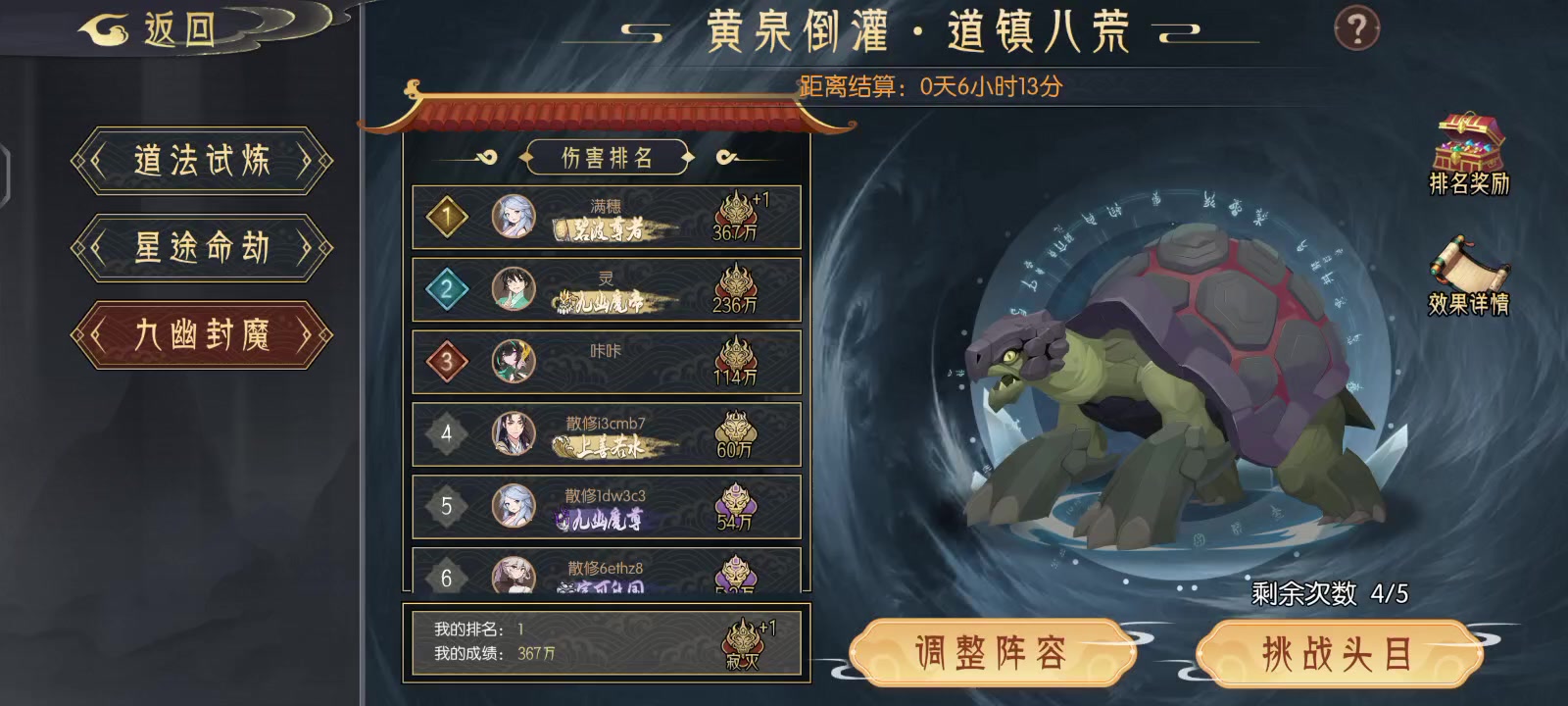 这是第一次打,在群里看了很多,听了很多大佬的意见。我来总结 常见问题 装备配饰看视频 其他的注意点1.自己总血量2.6万可以了,带一阶,二阶回血丹,我血量最后越少,攻击越高。带 威能丹,第一回合用,先打第二个怪,再打第一个。 然后留两只怪,好控自己血。第六回合,用法力丹,我用错了,然后主角复制神婆 感谢大家支持,我的邀请码是79mix4,如果对你有帮助,帮我回回血!万分感谢! #九幽 #攻略 #每