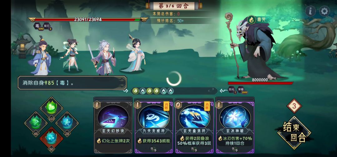 打轮回很大的问题就是对于群怪一回合解决不掉的话,后面会很乏力。但是没有玄天战力会掉很多。那么唐婉加上回天。你会发现不仅第1个回合爆发超高,后续依旧有爆发 只要死不掉。你中间两个回合又能贪伤害。最后一个回合又能爆发收割 回回天搭配。上官。同理。可以把上官技能拿回来。只是效果没有这个好。