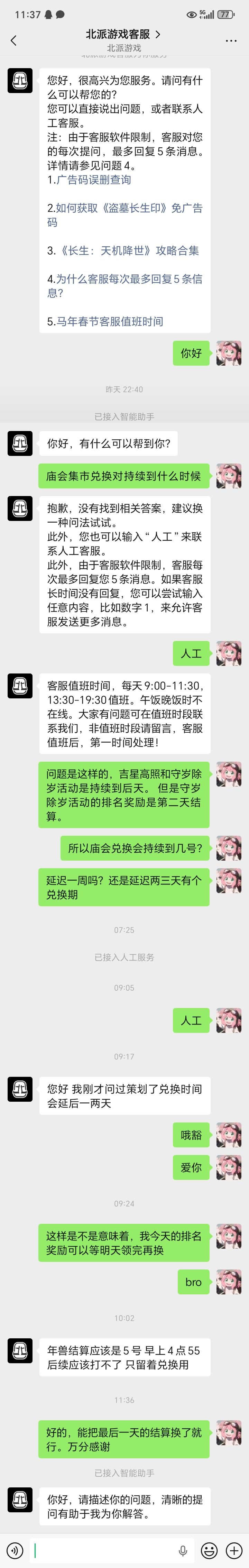 是这样的,我是卡着日期充值的。刚好留够了最后一天的结算奖励够换。所以在没有得到客服回复之前。我氪了一点还抽了6000灵髓。结果客服说可以领完再换会有两天的兑换时间。导致我血亏。为了避免大家走我的弯路。拿去不谢。