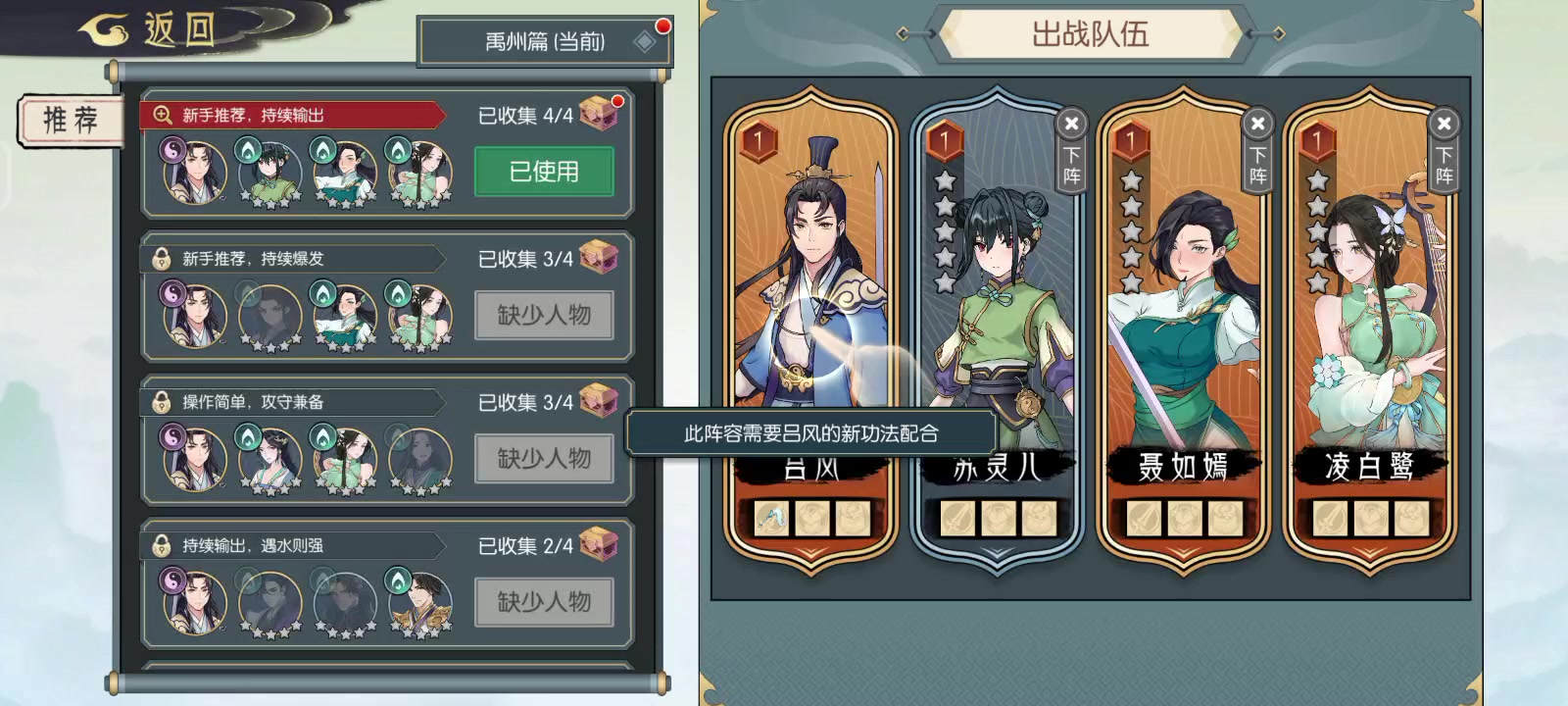 【亲测强烈推荐】越塔火队一合秒最强输出队伍,不比500层涅槃的玻璃大炮队弱,(此攻略是看了归墟大佬攻略后对大佬思路进行总结修改,视频是实测) ★★★★★★ 下面说说阵容出装和塔决: ○阵容: 燕彩衘 凌菲影 纳兰沁月 ○装备: 主角(武器凝符,防具战意臂或者寻隙鞋,饰品毕方或者破甲镯) 燕彩衘:(武器爆燃剑,防具寻隙鞋,饰品破甲镯子或者聚灵镯) 凌菲影(武器燃血枪,防具饰品同主角) 纳兰:(武器初