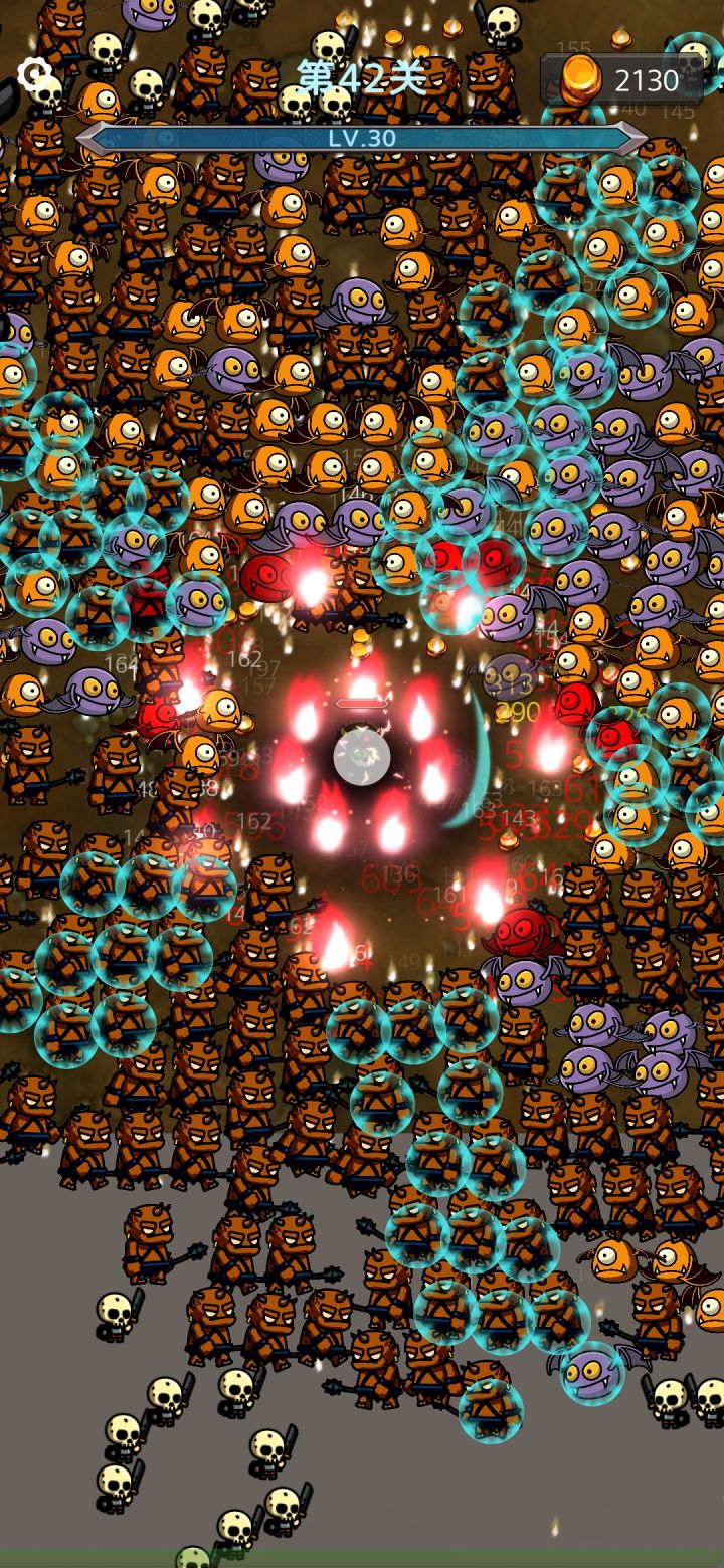 死亡光环,全屏伤害,可以数值设计的很低,或者不做伤害也可以。小怪死了以后对一定范围内造成小怪10%生命值的伤害,升级可以爆炸范围,提升百分比。