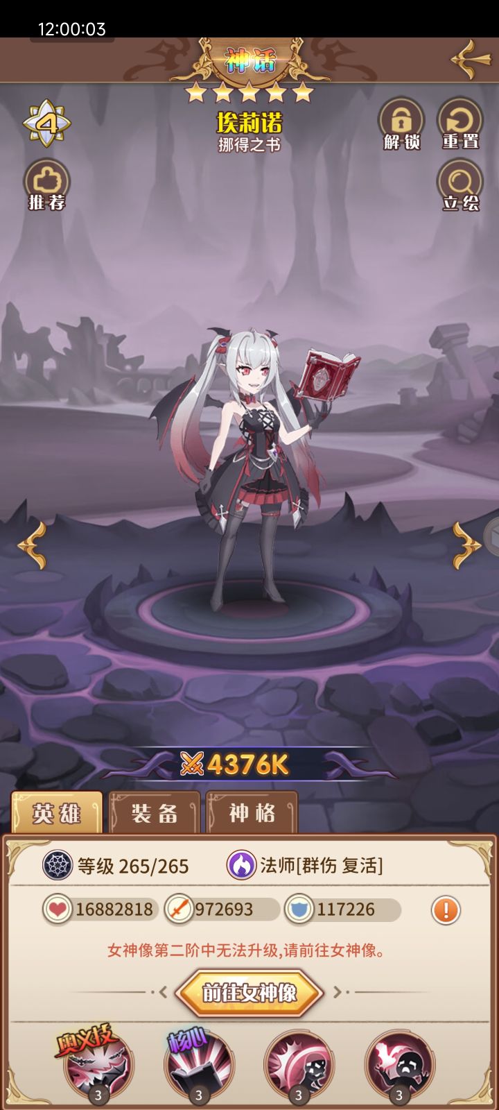 灵级再生与上级石肤、4级灵器,装备全四星。关于采薇的说明,14星采薇在28章及以前都能发挥作用,不会暴毙,能给萝莉免疫buff,很好用,在29章开始部分关卡会暴毙,临近29—10的关卡都会暴毙。暴毙后只能给萝莉上复仇buff和加一