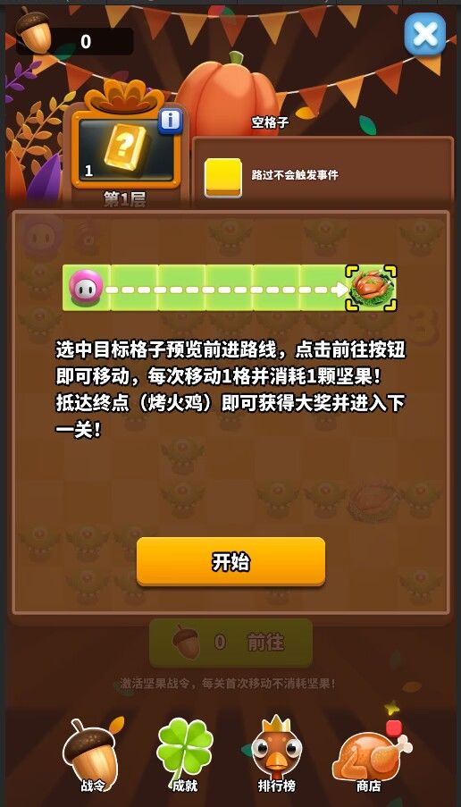 11月24号啦,也是一年一度的感恩节,很多小伙伴都会在这一天吃火鸡,这次也给大家带来了一个火鸡活动,同时期待已久的太空飞船和黑客皮肤也将同步上线~ 感恩节活动 1 活动时间11月17日~12月1日 2 活动内容首先给大家看一下活动内容玩家点开始之后,就可以选取想要前往的路线,路线的格子数量则是消耗的坚果数量,每个小怪物都有奖励哦,到达火鸡后就能立马进入下一关啦同时可以获得本关的大奖~ 接