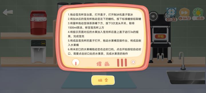 顺序太死了,有些不符合逻辑,而且无限重复第一次开始完全没有想下去的念头,水果杯那里有bug,做好之后点任何物品都无法点动
