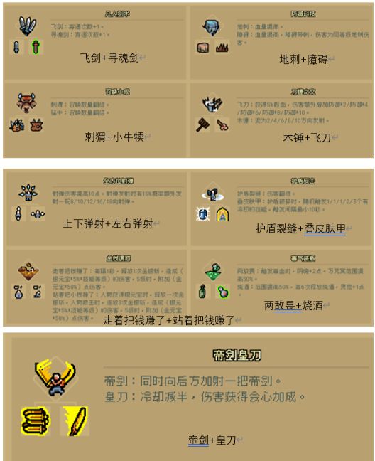 从一无所有到形成战力,只需了解以下内容: 1.生存篇。 活下来才有输出,活下来才能通关,所以我们首先要解决的第一个问题,就是生存。 生存靠什么?普遍来说,靠以下能力: 血量:带有吸血/治疗的能力,能极大的发挥血上限的优势。典型血量build:便便+鸭鸭=便便吸血+鸭鸭下便便+鸭鸭治疗,这就是典型的鸭便血量build。 护盾:带有回盾能力,就能极大的发挥盾上限的优势。典型回盾组合:冰锥+波浪,法术回