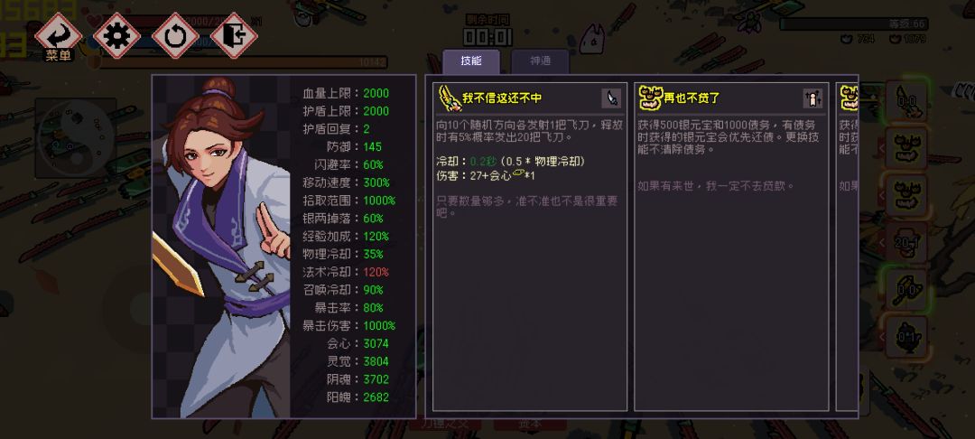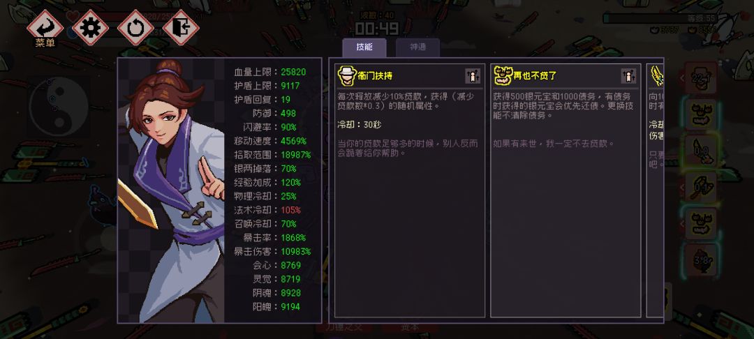 贪官洪荒难度属性,贷款上限99999,不过政府补贴单次加的属性上限为1000,所以贷款保持3.4w以上就能保证每次属性加到上限 贷款流适合除了卤蛋和店长以外的所有角色,开局就是苟技能选金元宝(甚至可以整一两个二级金元宝),憋到两三百金元宝,换一只母鸡剩下的转贷款,运气好,一波下来顶级技能能出三四个,然后就是枯燥的虐boss环节了 毕业技能:一只鸡,一个政府补贴,两个贷款,两个羁绊输出 ps:贷款得