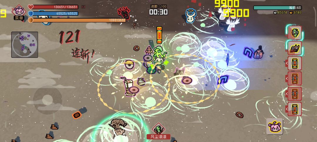 无尽刷怪很快不能像普通模式慢慢运营,开始小鬼+聚宝盆刷钱,兔子组合快速刷金矿和银矿顺便用被动献祭增加基础属性,在加上锤子+飞刀增加生存率,顺便打输出冷却快,没事就看看货郎里面有没有蓝色、紫色的技能,3-4波左右就可以把兔子组合通过货郎换掉,最好是紫色技能,就可以换陨石+喷火回血回盾,把锤子和飞刀升到蓝色或者紫色,现在不站桩生存拉满,矿提供的经济可以代替小鬼组合就换金色的梨花针,可以用来献祭提升基础