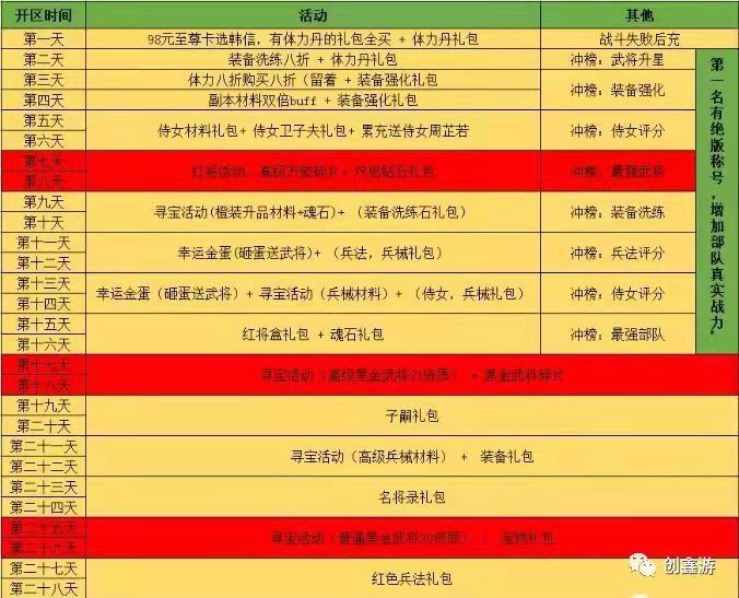 首先开局活动的三次十连抽一定珍惜好,大概率会出两个资质15红将,其中优先甘宁>张辽>曹植>颜良。培养出一个就行了,然后在第七天会送一个也选择初始红将便于进阶。