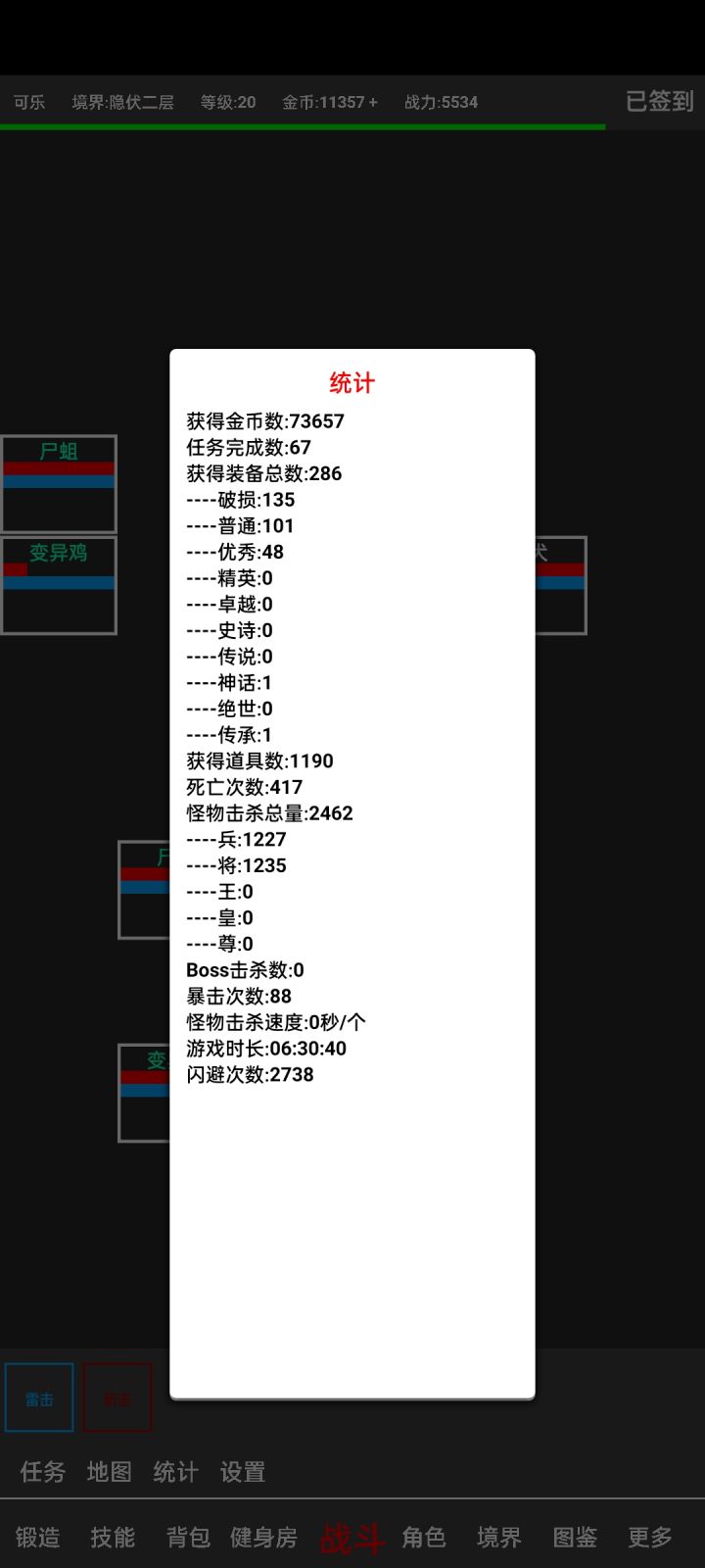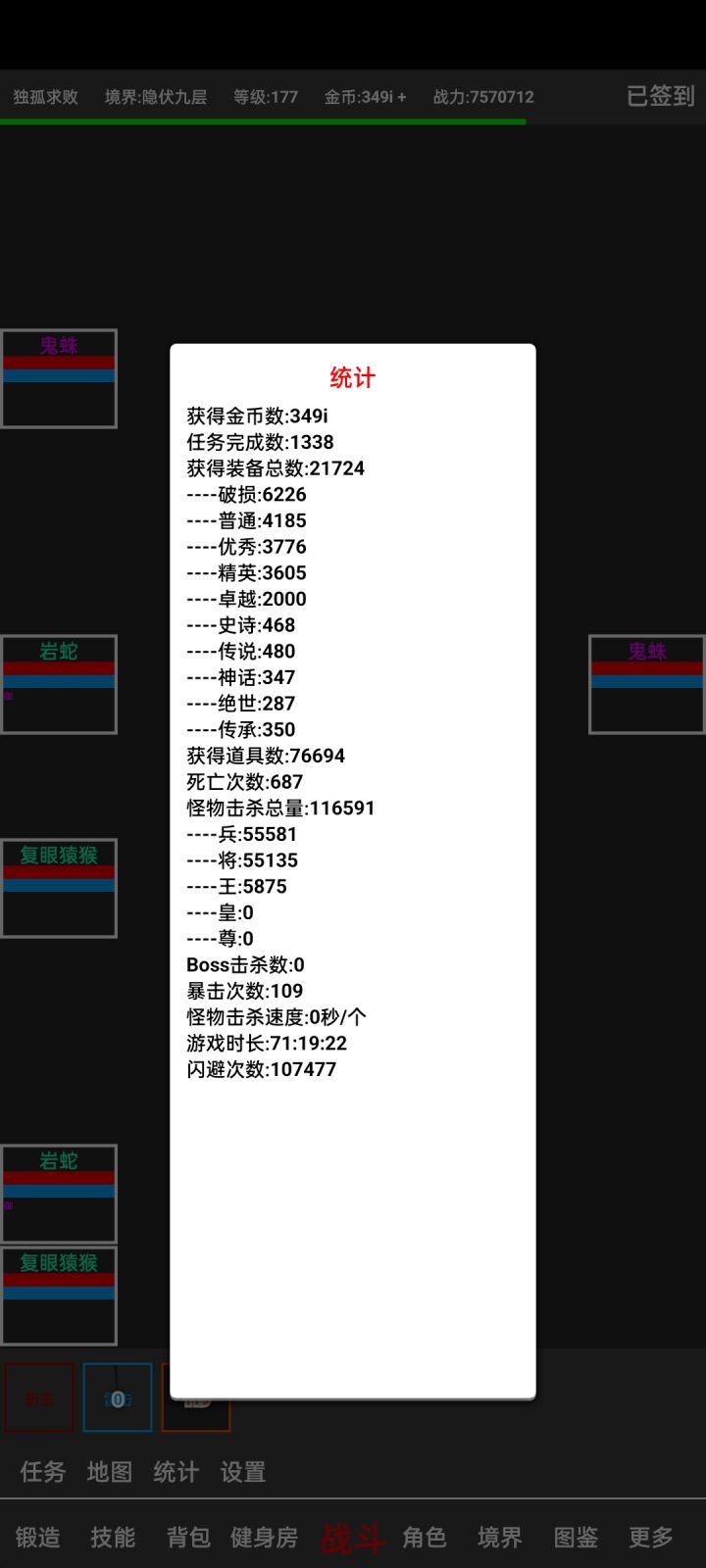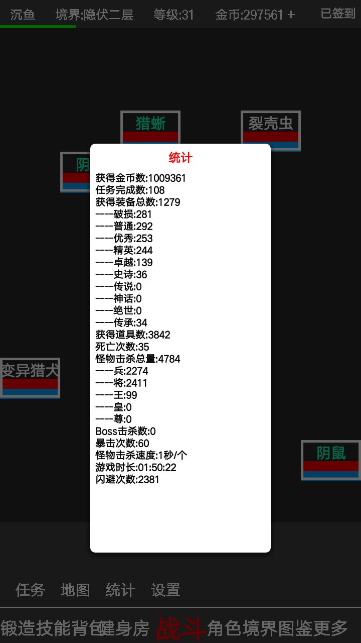 开局反复重开刷新手礼包,最好刷出传承,我就是一把5000战力传承武器开局,刷出三件穿上双防50+(魔防比较难刷,低了蓝色怪都能打的你一直复活),攻击300+就合格了,在图一反复进退游戏刷能砍掉血的boos,注意boos看着一样属性是不一样的,有的很弱,大概半个小时就能进图二,图二传承装爆率非常高,挂了20小时左右40级进图三,这时传承不怎么爆了就戴绝世装备,挂到第40小时左右升100级进图四,爆的100级装备七层境界才能穿,最快50小时这个版本就毕业了,然后前面存的石头就做装备,强化系统真的坑成功率惨的一p