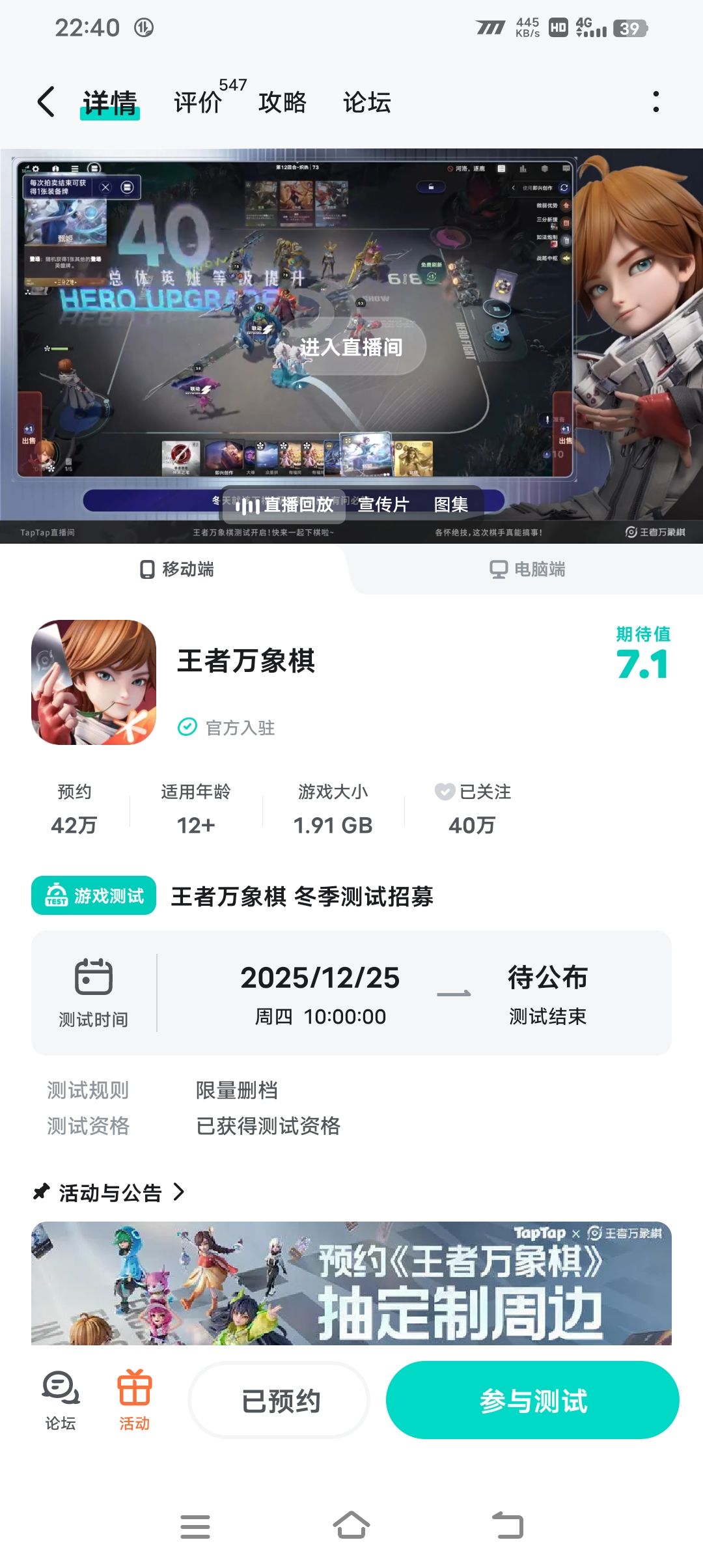 亲爱的棋友们,万象棋冬季测试开测啦! 你现在才发现?!哎呀呀,是不是感觉错过了一个亿~别急着拍大腿!前方传来线报,还有最后一波资格福利在路上~ 小欧我的小本本已经记好啦,现在还能上车的方法都在这里啦, 手速要快,姿势要帅!来晚的小伙伴们,可别说我没提醒哟~ 直播间掉落 1、各直播平台关注【王者万象棋】官方账号,在25号晚上7点进入官方直播间,观看王牌之夜直播,即有机会掉落资格。 2、可关注各平台的