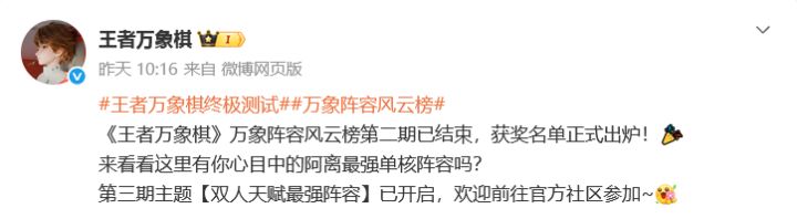 🏆 由腾讯天美工作室群研发的《王者荣耀》IP衍生自走棋手游《王者万象棋》近日传来喜讯,终极测试期间推出的“万象阵容风云榜”系列玩家共创活动持续升温,第二期名单正式出炉,第三期“双人天赋最强阵容”主题活动已同步开启。在第二期活动中,“阿离4攻速狄仁杰”与“移动狙”两大阵容凭借超强实战效果拔得头筹 依托王者荣耀IP影响力与腾讯大DAU商业化模板,作为天美工作室群自研的类自走棋游戏,王者万象棋被市