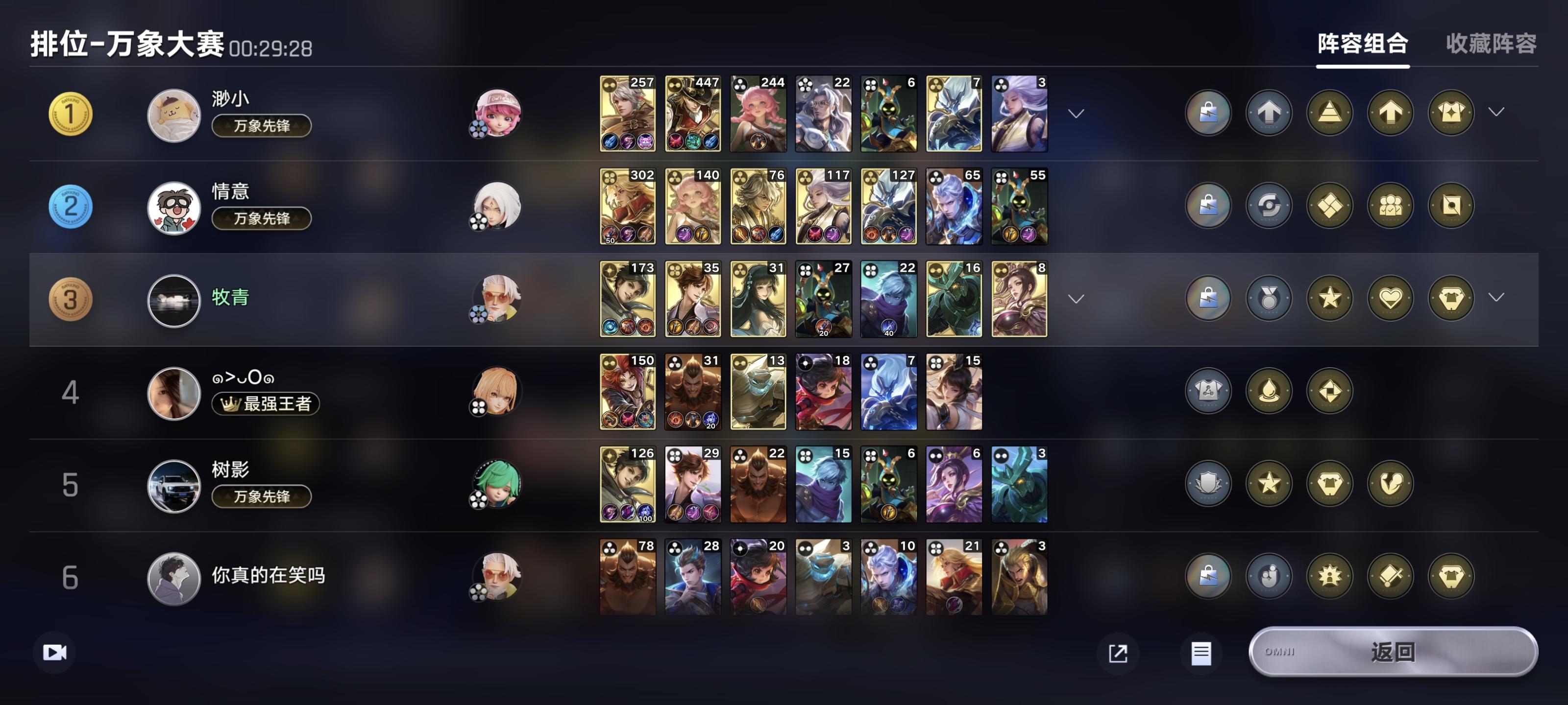 全是嫦娥玄策,拿个镜像就能稳吃分了,太有操作了,真被这玩意恶心的不行,有啥操作运营啊,拉二找玄策然后一直拉等级拿战力强化就完事了,对正常阵容就是降维打击,等级压制,毫无压力,发现这个阵容的人属实有点东西,但是是真恶心啊这玩意,曜天帝起码还要想一下怎么升级快,这玩意毫无技术含量,强度又超标,合适吗?