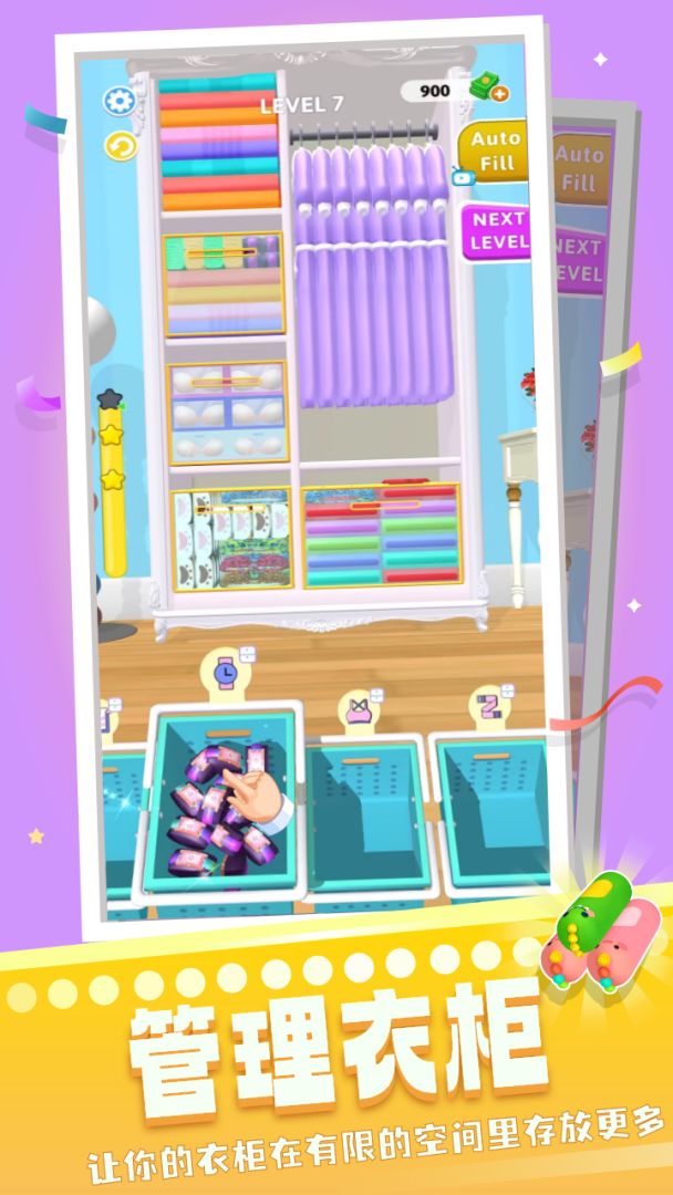 开发者的话这是我们 Funcube Studio 倾力打造的第一款休闲归置类游戏,希望为您带来更美好的愉悦玩游戏体验。 游戏整体为可爱的卡通风格,简洁流畅和舒适丝滑的视觉体验,帮助您轻松解压和释放强迫症的压力。游戏有多种关卡任务设置,自由度很高,把衣物以合理方式整理到衣柜里就可以进入下一关,给您不一样的挑战,充分展示您的整理能力。 Come on,展示您的想象能力和动手能力的时刻!