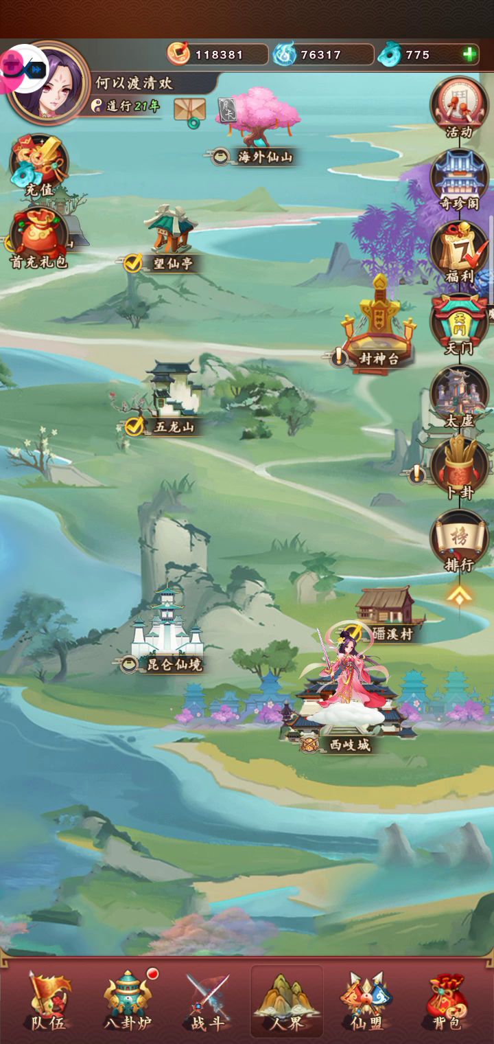 开区第2天才进游戏,氪了6元的首充,目前主角120级了,新游戏现在没有什么人玩,也没有什么必须的氪金点养老好游戏,氪点基本就只有月卡,因为有个3倍速。跟着主线走过到第8关的时候就可以招几个天仙宝宝,前面的时候次数先不要用掉,可以到这里在用,行了目前就玩到这里。后续有需要在补充。