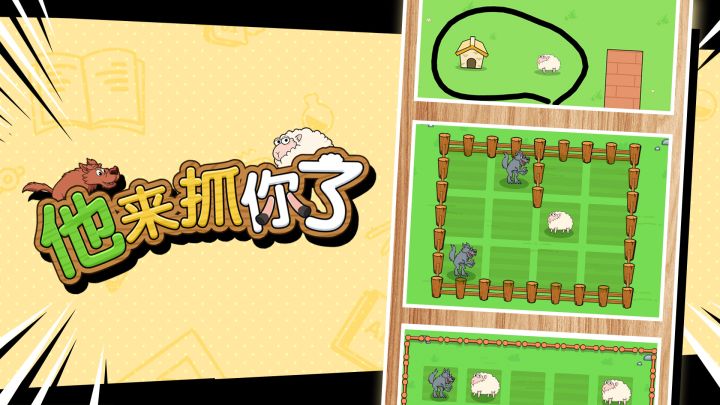 《他来抓你了》是一款以保护小绵羊为主题的创新益智解谜休闲游戏。