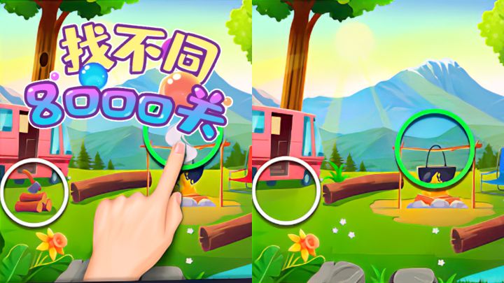 找不同8000关连主播都在玩的找茬游戏:考验你的眼神,动用观察力和脑力在各种精美的图案中找出它们的不一样,更有救救狗狗,寻物大挑战 ,欢乐水排序等10多种有趣玩法等你挑战!