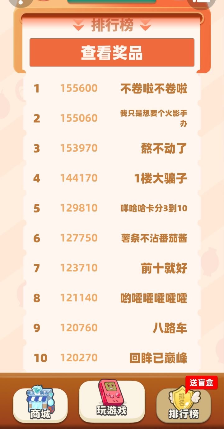 3.排行榜完全没有激励作用,需要挑战劵来游玩。