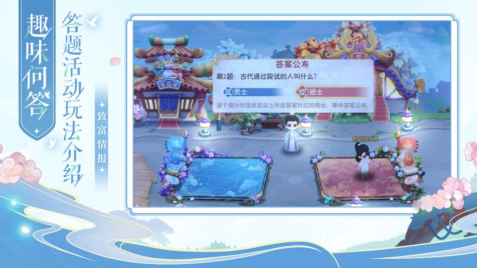 亲爱的小富婆们好呀!小牧又来为大家带来激动人心的爆料内容啦!这次为大家带来全新玩法——限时答题活动的介绍。答题活动在广场举行,每天固定时间段开启,小富婆们可以卡点前往开放广场参与!参与需要在倒计时结束前站在选项区域内,等待答案公布。公布答案后再进入选项区域的小富婆,就不算参与答题活动了哦。 参与答题活动有奖励哦。答对、答错、漏答有对应计分机制,全部题目答完后,满足最低上榜分数的小富婆将进行排行榜的