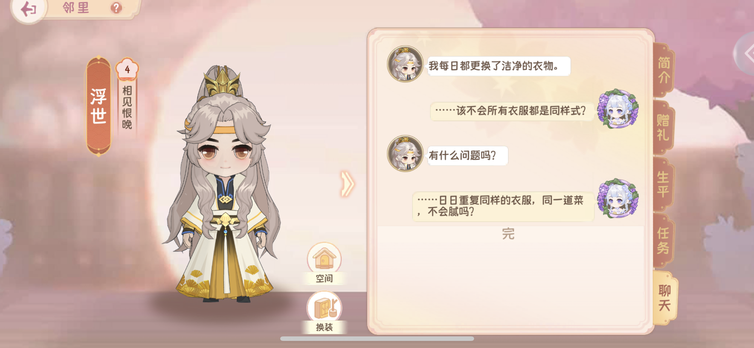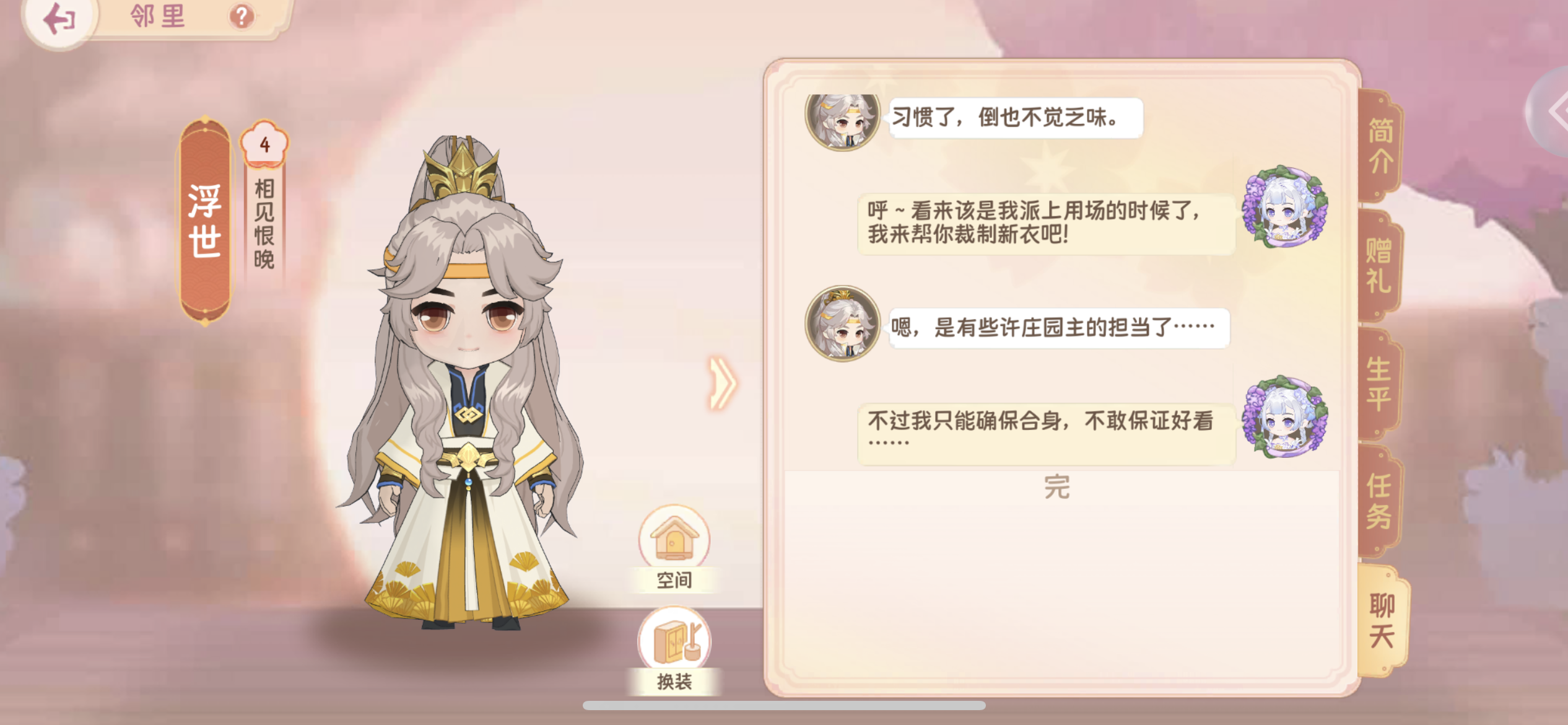日常在万象台那里邮箱在悬赏榜旁边三级解锁棉花枫树:产出原木枫叶原木可制作家具四级悬赏榜五级集市六级好友七级解锁溪桥柳细需求麦居杂物柜*1无花果20九级解锁荻花渔歌需求普通木棒*6无花果*40麦居浴鱼缸*2十一级解锁云窗雾阁普通木板*3红色棉布*2麦居衣橱*1十二级家族十三级邻里弄影流辉物品需求原初圆桌*1包边坐垫*4落霞羽毛*80十六级解锁青青烟雨