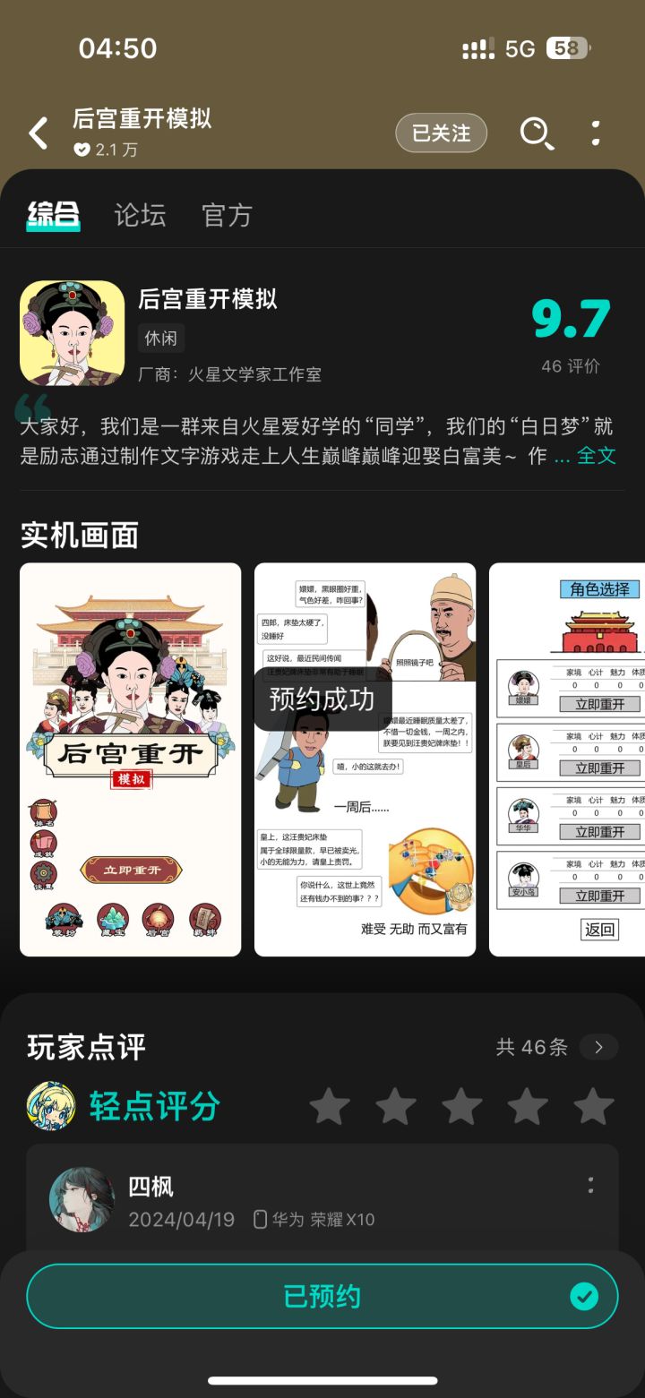 大家好呀,我是《后宫重开模拟》的制作人,游戏挂预约有段时间了,非常感谢大家对我们游戏的支持,今天来给大家安排一波预约福利~【活动时间】11月18日 —《后宫重开模拟》上线日截止【参与方式】预约《后宫重开模拟》,并在该帖内发送预约成功的截图,如:以下示例【活动奖励】奖励内容:50元京东卡*4,100元京东卡*1发放条件:预约满5000抽取2个50元京东购物卡预约满10000抽取2个
