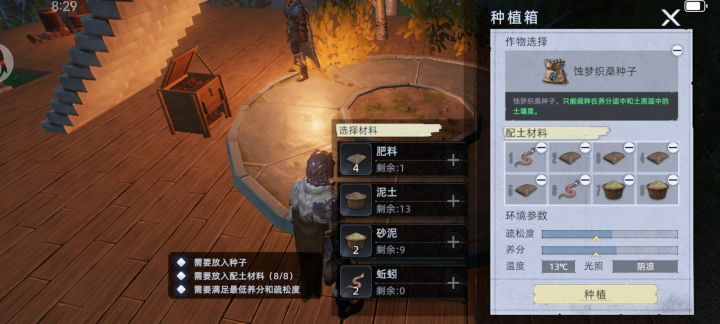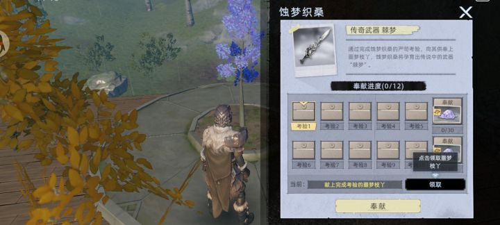 1.打一图北边的石臂大树,概率掉幻灭之籽2.凑齐30幻灭之籽3.找地图中间树下的神秘人兑换,1蚀梦织桑,10紫花草种子,1种植盘4.蚀梦织桑有12个任务(每个间隔10小时),会给带有诅咒的武器(耐久用完要再等10小时),第一个是打火山犀牛(诅咒是每秒1%掉血),第二个是处决20个怪(诅咒是非背刺、处决和技能只能造成1点伤害),第6、12个任务是交30个紫花草植物精华,喜阳、4肥料2沙泥,记得
