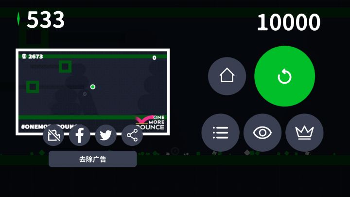 《One More Bounce》「再弹一次」是独立游戏开发商SMG Studio - “One More”系列的最新作品,这个系列也是秉承制作团队一如既往的“花式虐心”体验,由最早的《One More Line》,到后来的《One More Dash》、《One More Jump》以及现在的《One More Bounce》可以看出开发商并没想过放弃,反而一代比一代创新不同的玩法操作,其创新精