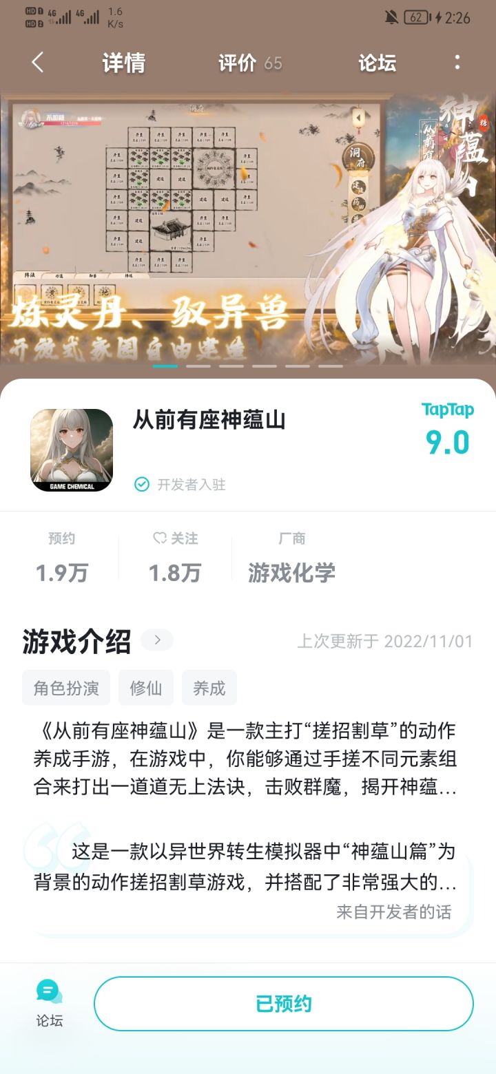 雷迪森and杰特们,各位道友们,好久不见~~~还是我,没错~还是那个花见花开,人见人爱的防沉迷,我改名字了以后请叫我“大呲花” 不要问为什么~《从前有座神蕴山》是以《异世界转生模拟器》姊妹篇“神蕴山篇”为背景,你需要通过一重重艰难险阻,集异宝、铸灵器、习道法、御灵兽、炼仙丹、提升境界、击败异兽,最终登上神蕴山九十九重天。“不为成仙,只为在这红尘中等你归来”咳咳~那么好~直奔主题:预约活