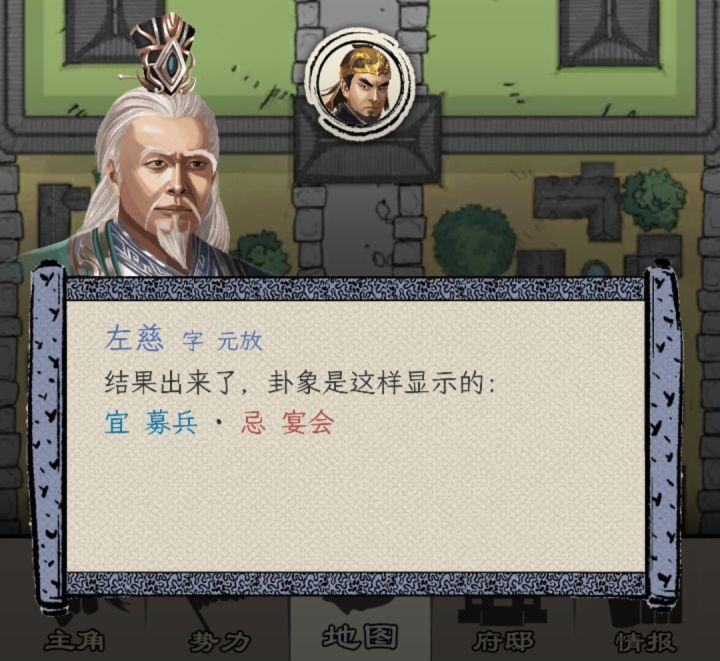到酒馆向跑堂打听见闻,多次打听可得到华佗或左慈的所在地。(华佗在医馆,左慈在观星台)华佗能够增加你的健康值(点击针灸);左慈能增加命数(点击祈禳)。此外,如果体力降到30以下会降低健康值,每年会随机刷新宜和忌,对命数的增减也有影响(做宜增命数,做忌减命数,到观星台向道士占卦可知)。当健康或命数低于角色年龄,就可能在年度总结后死亡,结束游戏。