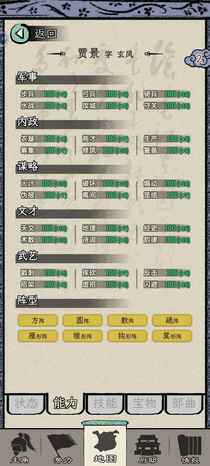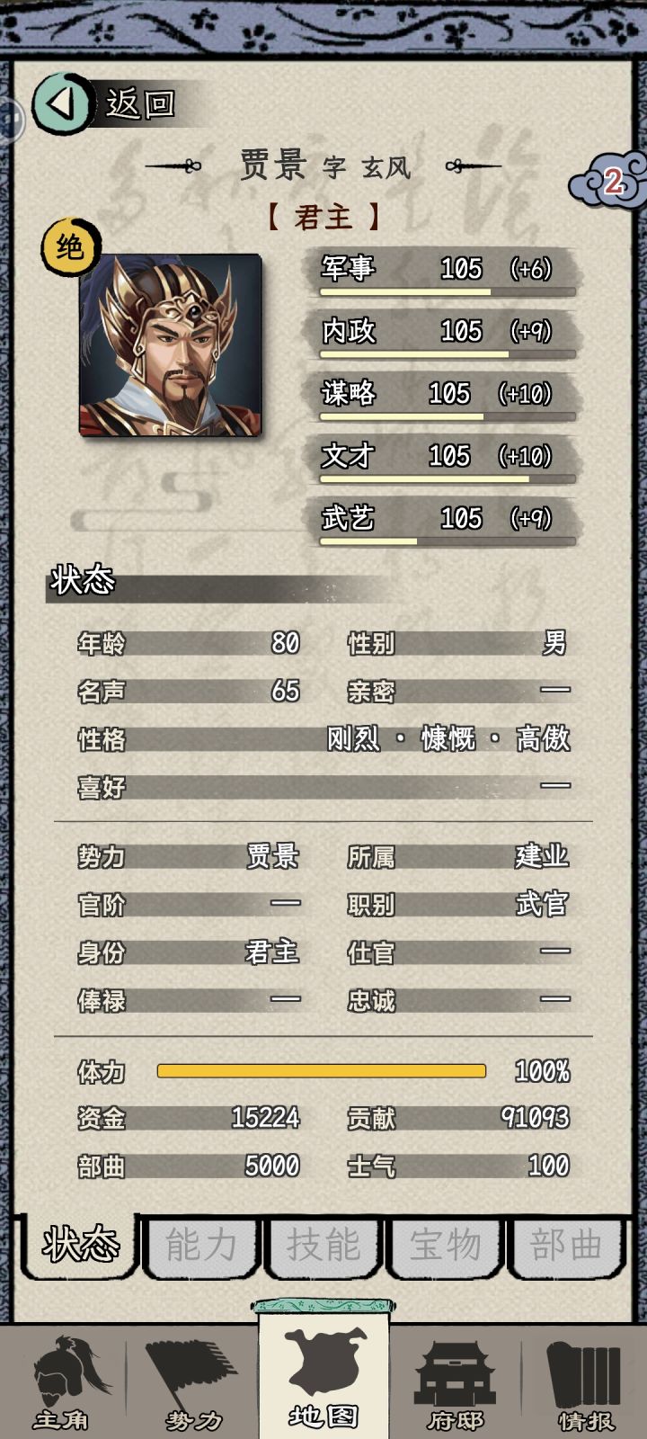 第一次玩没看广告一直莽,落地曹操,首先收几个地主家的儿子同僚,五品给派到建业太守,已经晚了很多了,下邳都出诸葛亮了,掏过来之后和陆逊组合拳直接无脑平推了。没广告260年以后才打完后面觉得绝的都老死太快了,后期完全没困难,想试试假想剧本,结果一直没空城,老板又不会死,无解,重开第二次统一,开局广告属性加满,落地刘表,很快就长沙太守了,同僚选黄祖,丙2000部曲能活到80岁,有广告每年都功,就快很