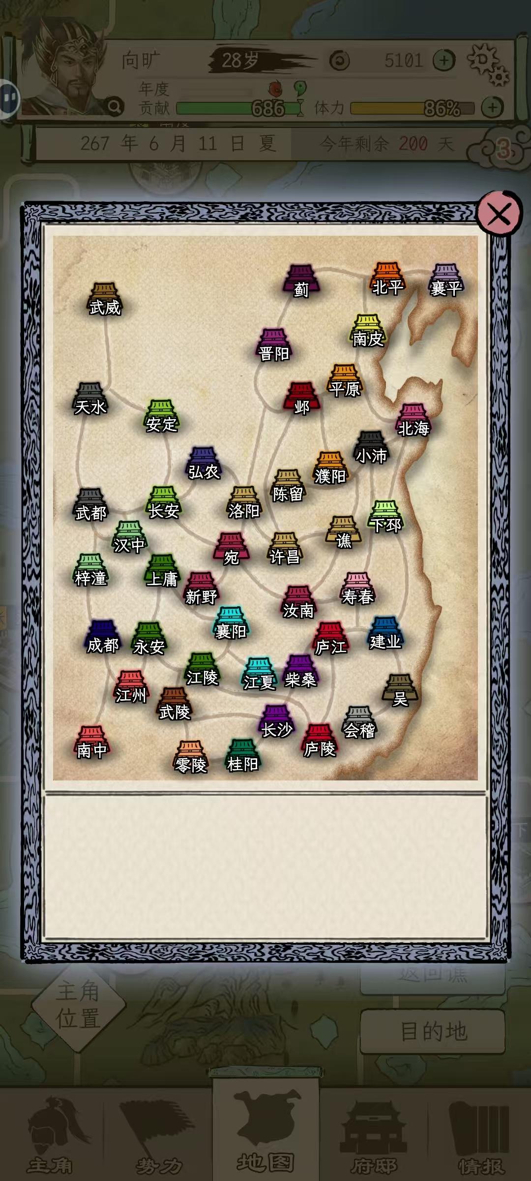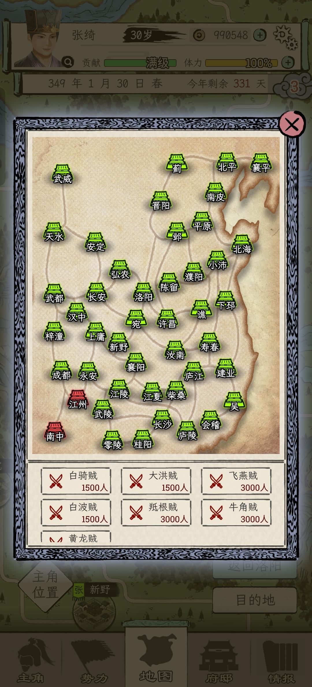 第一次玩,选刘焉和最早的时间点,因为不是很熟练,玩了差不多几个小时,总算通关了。前期就是猛猛做任务,干到太守,感觉刚到五品官时候,属性不是很好(主要是像笼络,离间这些只能读书搞的属性不高),这时候当太守想把贡献搞搞高比不是太守时候的还要难(除非手里有“绝”的将领)。后面就要不断巡城读书(专搞内政,文采 谋略,军事方面的),如果到50就基本够用了(后面给我一个姜维,基本两个人就能完成任务),然后就