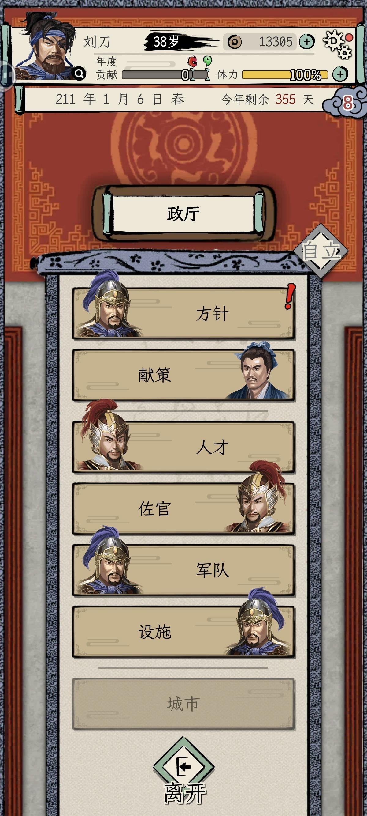 第一次玩,选刘焉和最早的时间点,因为不是很熟练,玩了差不多几个小时,总算通关了。前期就是猛猛做任务,干到太守,感觉刚到五品官时候,属性不是很好(主要是像笼络,离间这些只能读书搞的属性不高),这时候当太守想把贡献搞搞高比不是太守时候的还要难(除非手里有“绝”的将领)。后面就要不断巡城读书(专搞内政,文采 谋略,军事方面的),如果到50就基本够用了(后面给我一个姜维,基本两个人就能完成任务),然后就