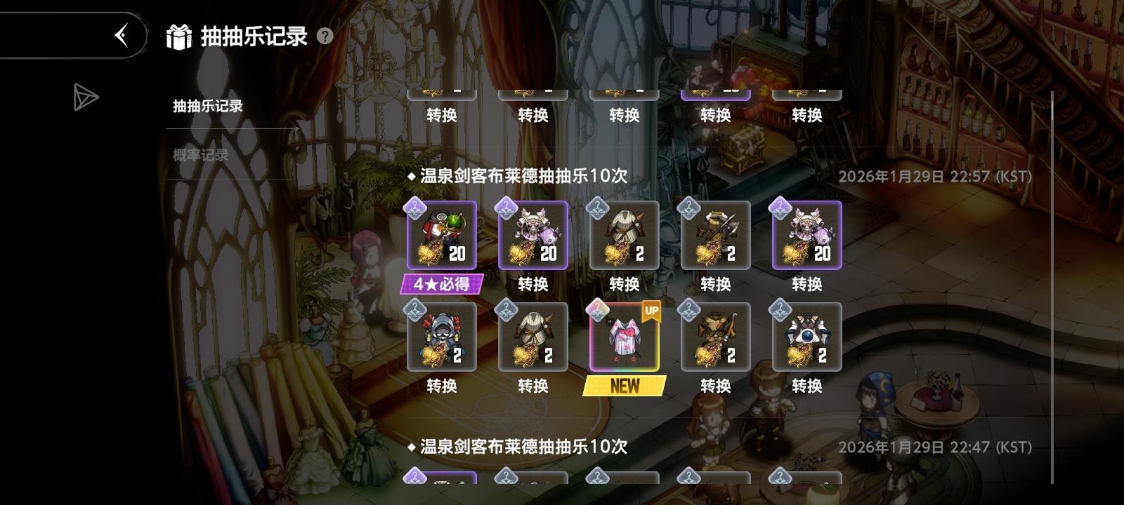 这游戏的抽卡爆率真的很高哦哦,我1一次我十连抽抽了抽出来了,有一次抽出来了呃三个金十连抽抽出来了三个金免费抽完,有一次抽出来了一个限定。你不对,当前角色呢?当我还抽出来了当前卡池角色很不错