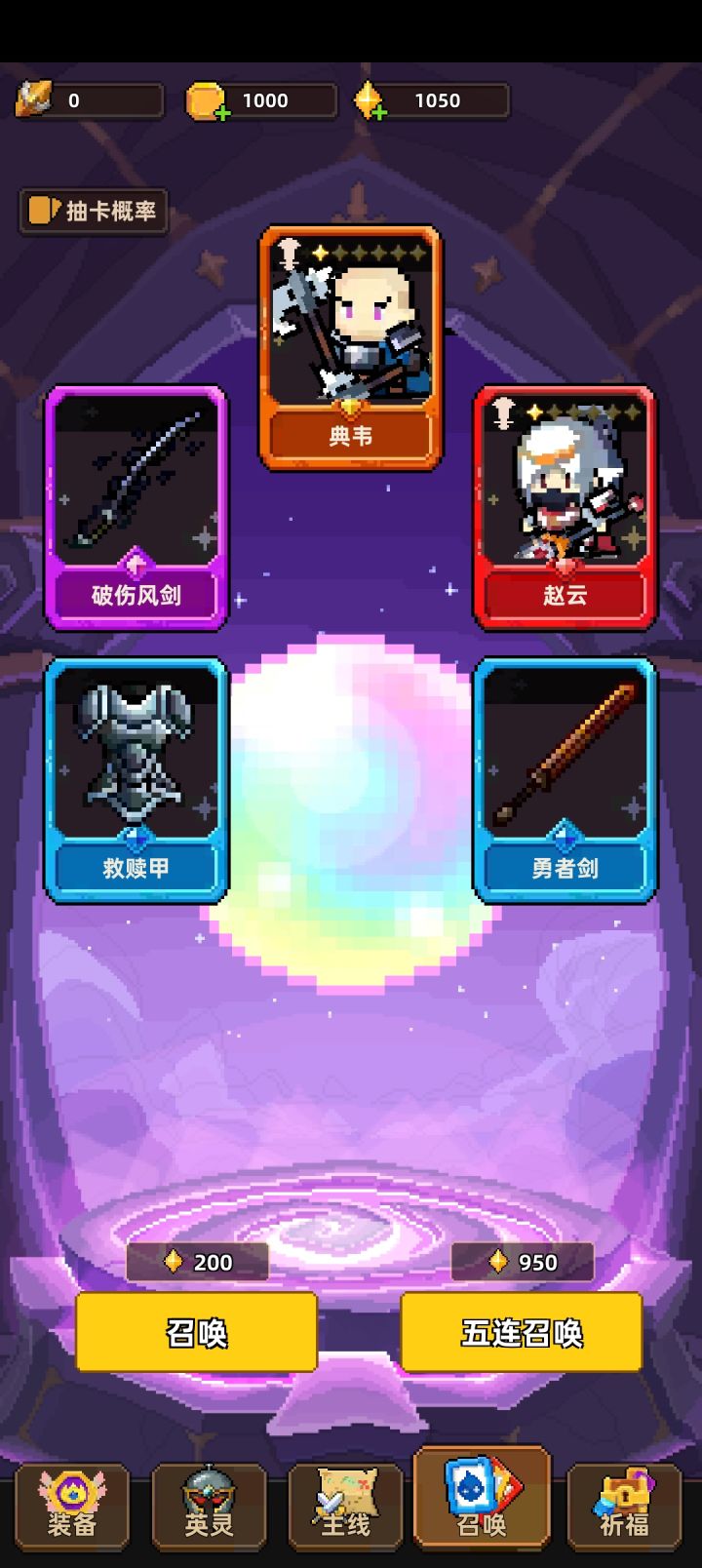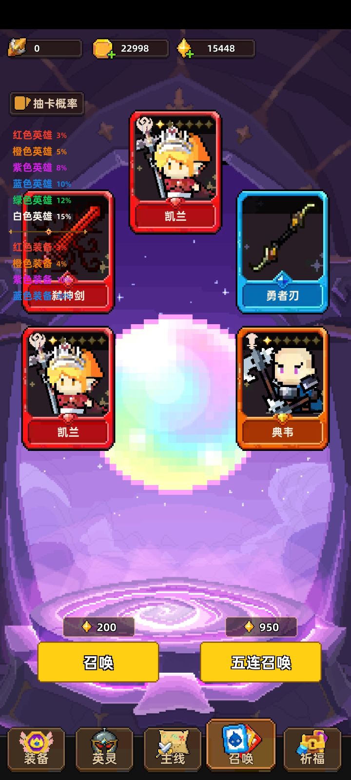通过昨天的篝火测试上线,已经有玩家给我们提出了非常宝贵的意见和一些问题;我们对于各类影响玩家体验的问题会实时进行小更新修复,非常感谢大家的支持!【更新内容】1.添加了兑换功能2.修复升星卡游戏的问题3.增加抽卡概率4.增加红色英雄凯兰和蓝色英雄冰法5.增加精英挑战,现在可以重复挑战关卡了【BUG修复】1.装备数值优化修改,感谢@尘风2.修复赵云回血问题,感谢@学习资料.jpg @