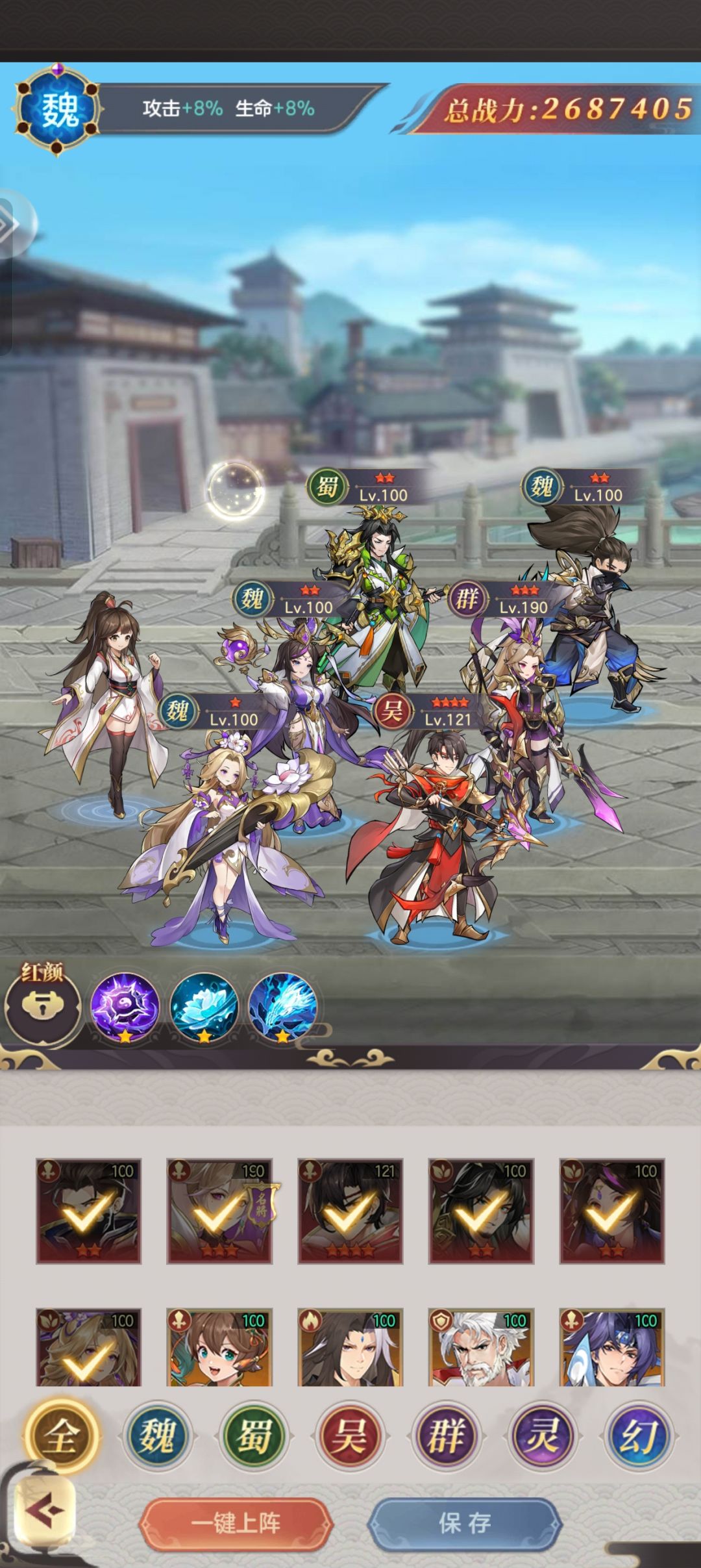 超完整阵容推荐来啦: 萌新、前期阵容推荐萌新、前期阶段要求不要太高,有啥玩啥(氰老忽略》,然后找准自己想走的路,慢慢整合资源,培养武将,这里推荐几个强势的单兵武将,然后搭配一些阵容。额外说明:9星升10星需要吃9星武将(无国家要求); 10星升11星需要吃9星武将(无国家要求); 11星升12星需要吃10星武将 (无国家要求)。 因此所有武将都可以升到10星先用着,不要怕。 蜀国二一赵云、黄月英、