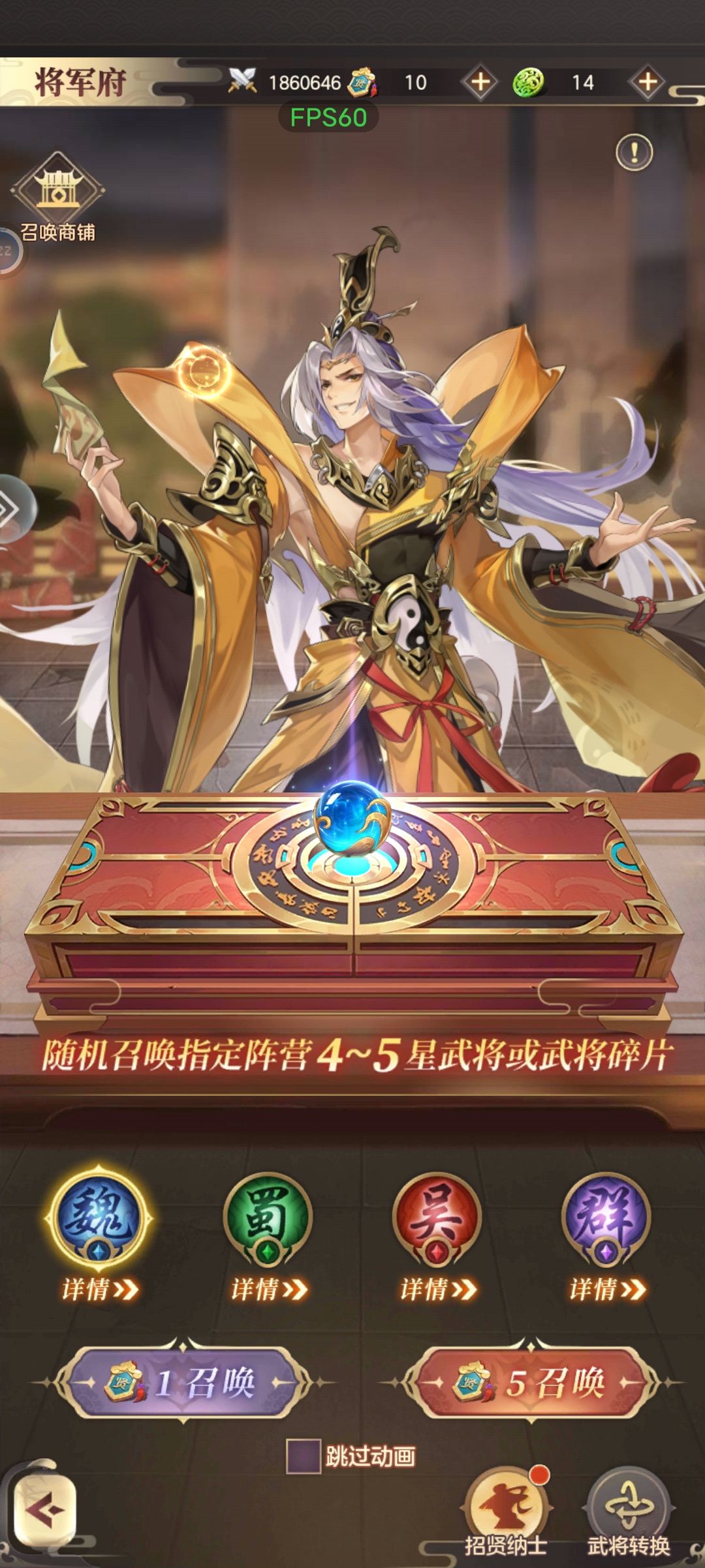开局: 前期有什么卡就玩什么卡。注意不玩的卡升到9星就ok,留作以后核心武将升10星的狗粮。阵容混搭就好,新手建议玩群魏混搭,蜀国和吴国稍弱。 武将分类: 武将分为名将、普通将、狗粮将。名将毋庸置疑是游戏中的稀缺卡,抽到必留住。普通将也是必玩的,前期千万不要因为升星着急把好卡当做狗粮吃掉。单升到10星需要5个本体,继续升星还要更多,需要注意。狗粮将就是放心吃的狗粮,随便吃。 去将军府看武将兑换的牌