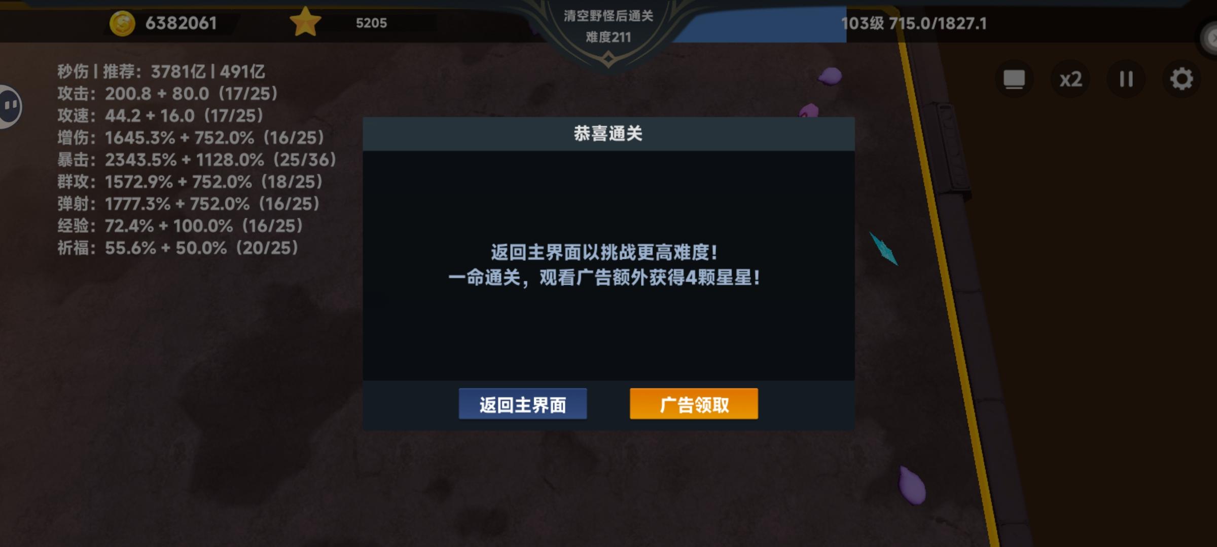 总感觉怪的强度不是一般的高,第一关搞了很久,2、3关挺简单的,现在卡在第四关,第四关开局九级祝福都拿不下,玩了6个多小时