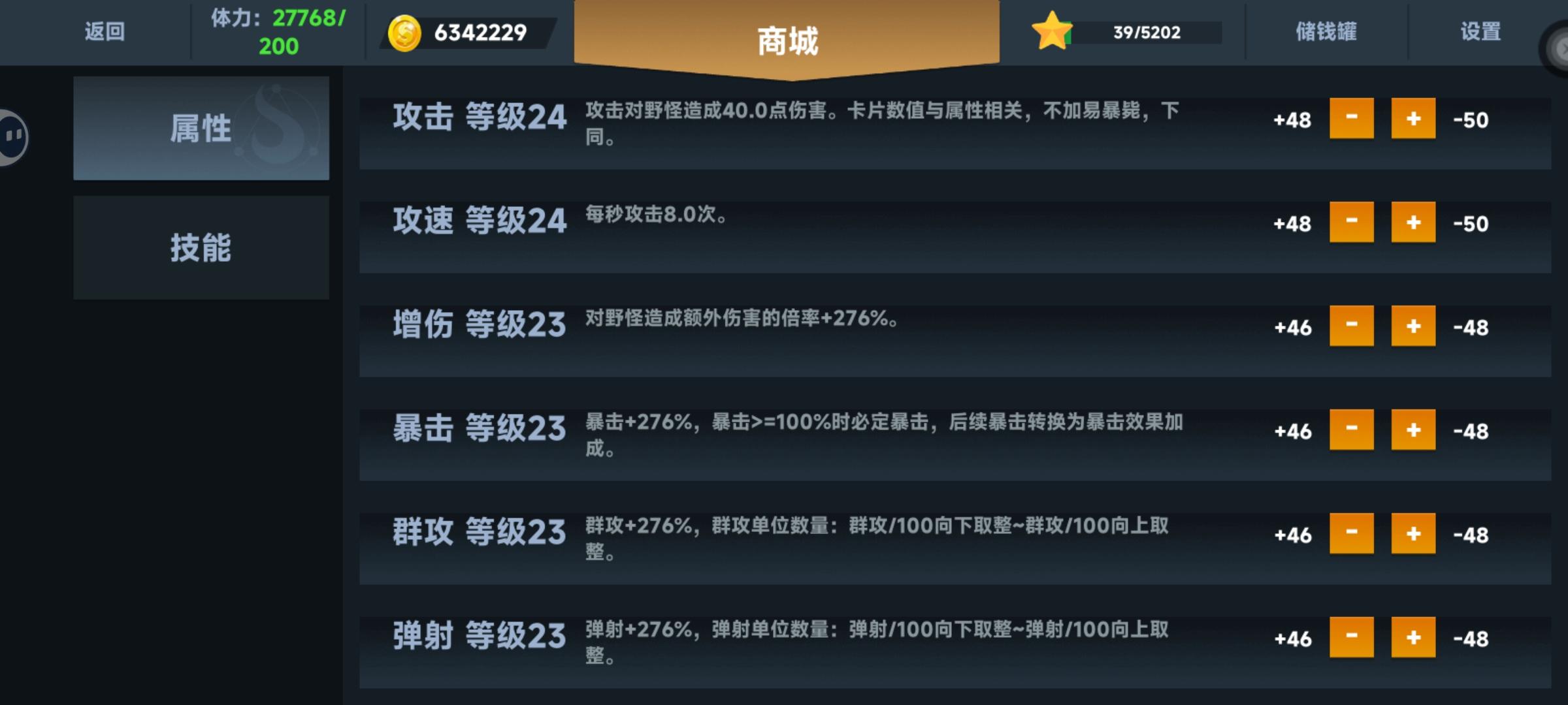 1.卡片,属性,技能优先度排序技能>卡片>属性2.技能优先度分身>祝福>进阶所有属性点,优先点分身,不够就点祝福,其次进阶3.属性属性点不够点技能在点属性,均匀加点即可,没有优先度4.卡片a.选卡技巧,优先凑齐卡片羁绊b.经验,祝福单独一档,在无生存压力下优先选经验优先于祝福,前期有2祝福2经验即可,高等级的可以优先选,后期4祝福6经验基本满足需求生存压力大,可以不考虑这两