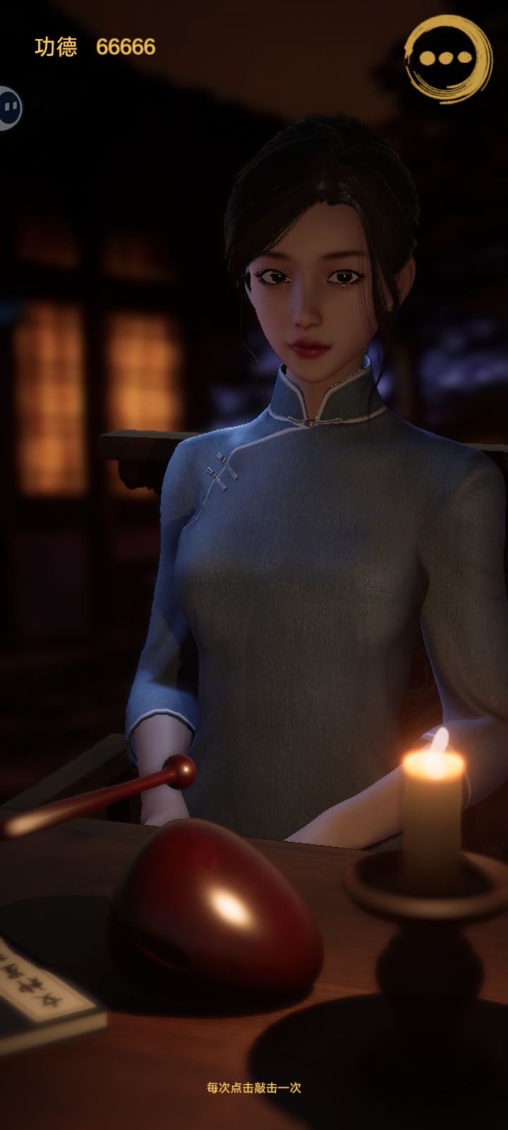 并且建模水平优异,人体不错。首先那个女的蛮漂亮。当你敲木鱼时,眼睛会看向木鱼,你停下一会儿时会看向你,看你一会儿眼光又会移向别处。眼珠滚动很自然。当那个女的敲木鱼时,会身体前倾,脖子往前一点,总是看着很自然,想必是精心打磨过的……
