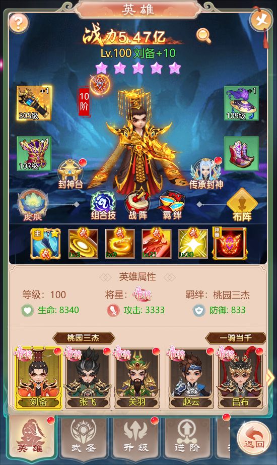 一、新增【英雄封神】与【英雄协战】玩法 【开启条件】主角等级达到330级、开服天数达到38天 【功能说明】 ◇达到指定条件(完成封神台5个任务,消耗指定道具)即可解锁英雄封神以及每个英雄的专属神武养成。 ◇英雄封神后,不仅有数值、原有技能的提升,而且还新增了协战技能和专属神武养成 ◇同一羁绊的英雄全部封神并养成到一定程度,可提升该羁绊的组合技和指定的神器技。 ◇拥有两个封神英雄后,解锁协战位。协