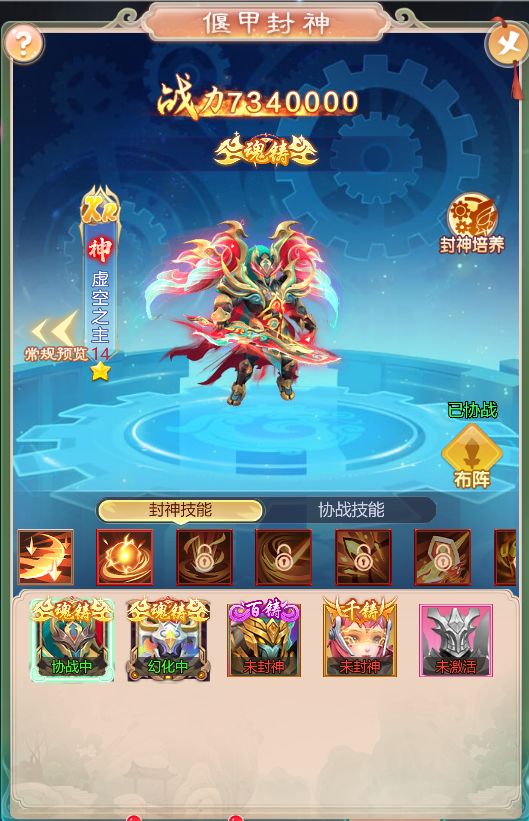 偃甲封神上线,封神家族又添一员猛将!试炼副本也开启咯,会产出大量材料助力仙友们的偃甲封神养成哦!快来跟小希一起看看它能给仙友们带来什么提升吧! 一、新增【偃甲封神】与【偃甲协战】玩法 【开启条件】开服天数达到68天,角色等级达到300级【功能说明】 ◇达到指定条件(待封神的偃甲皮肤铸甲至灵铸5层,消耗指定道具)即可解锁偃甲皮肤封神以及后续封神养 ◇偃甲皮肤封神后,不仅有数值、原有技能的提升,而