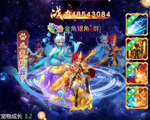 《大圣神威》是一款全新西游题材的国风Q版放置回合制手游 !游戏以战力养成为主,集合成宠物收集养成、副本探索、PVP等多种玩法。游戏独特的挂机放置与托管玩法,彻底解放玩家双手。 大圣神威游戏特色: 游戏集合成宠物收集养成、PVE副本探索、PVP单区宗主、连服宗门、跨服争皇为一体,玩法丰富多样化!开局即送VIP10,装备,宠物等。 大圣神威·核心玩法介绍 一、境界系统: 玩家通过游戏内各个养成系统的参