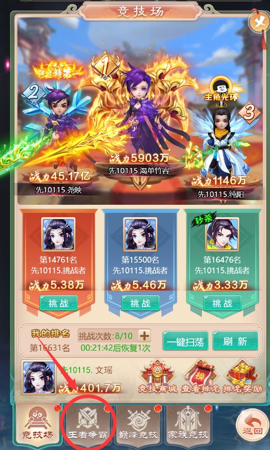 天地浩渺,乾坤浩大,如果你想成为修仙第一人,盛名享誉全服,那么八方会武的【王者争霸】跨服活动必将是你第一选择! 活动时间:每周一10:00到周日22:00 活动类型:跨服活动 参赛条件: 1.等级≥150级 2.周一00:00点进入本服战力榜前200名 活动介绍: 1.活动开启后,从主界面右侧的【竞技场】便可进入活动(在这里小编要敲重点,只有满足参赛条件的仙君,才有资格参加比赛哟 )#攻略#游戏安利