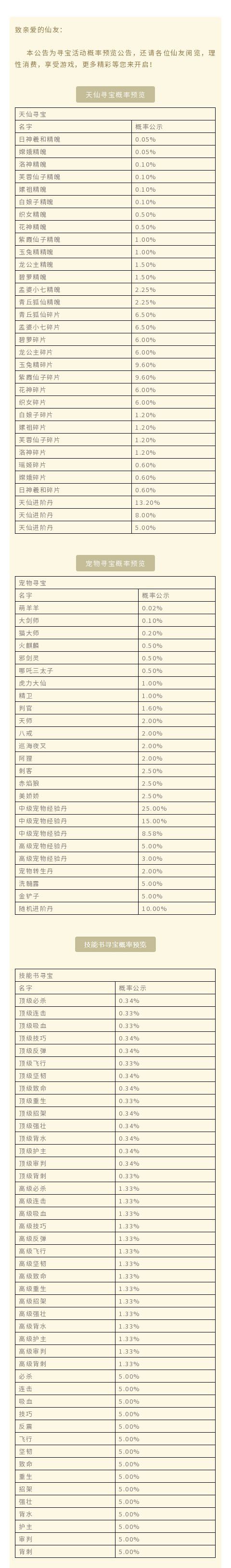 【大圣神威概率预览】天仙,宠物,技能书寻宝